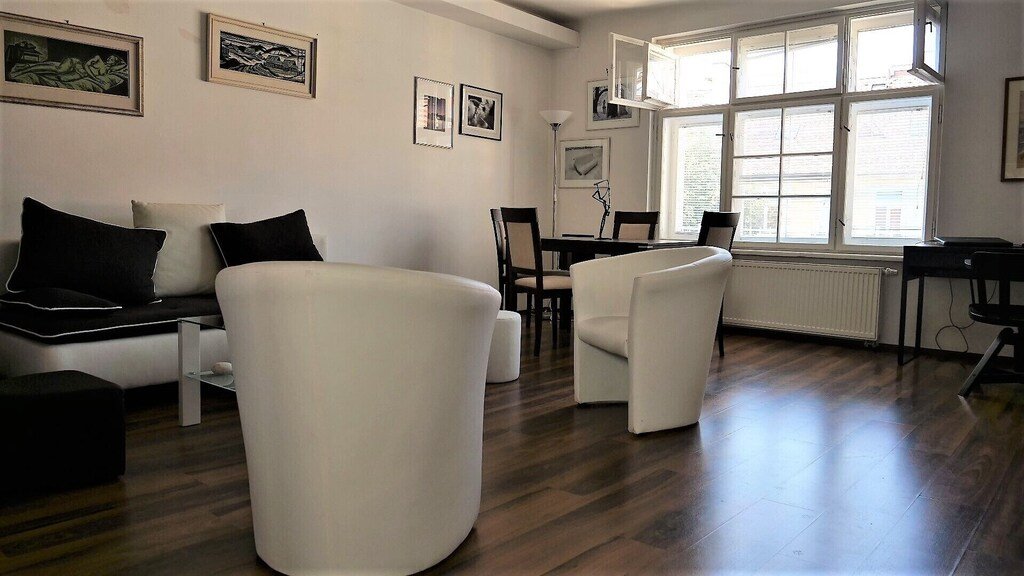 Moji hosté by měli celý můj byt o rozloze 65 m2 pro sebe, včetně obývacího pokoje 15 m2.