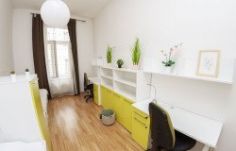 Byt je plně vybaven, a pokoj si musíš zařídit sám. Bude tu pro tebe k dispozici vlastní gauč a skříň.