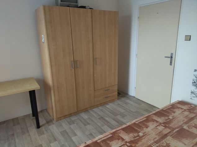 Pokoj má balkón, je plně vybavený postel 180x200, skříň, stůl, židle.