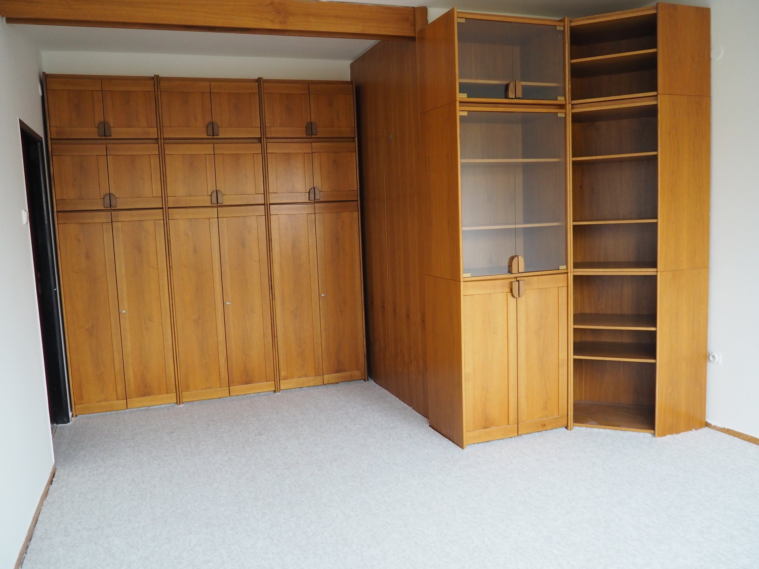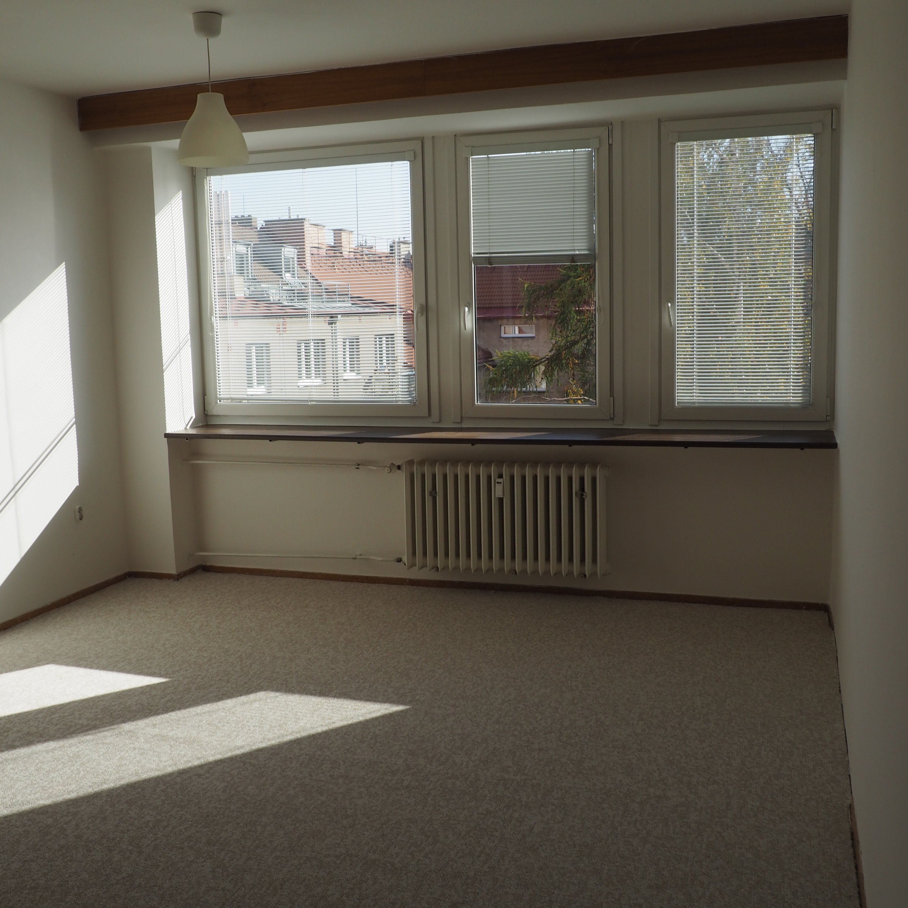 Cena za menší pokoj je 10 000 korun plus 2 000 za energie. Jo a ještě je tu kauce 10 000 korun. V pokoji je čerstvě vymalováno a i koberec, co vidíte na fotce, je nově položen. Pokoj má také zadní stěnu osazenou skříňkami, jak můžete vidět na fotce. Na fotkách možná vypadá trochu menší než v reálu, ale původně v něm byla ložnice s kanceláří, takže je opravdu prostorný.