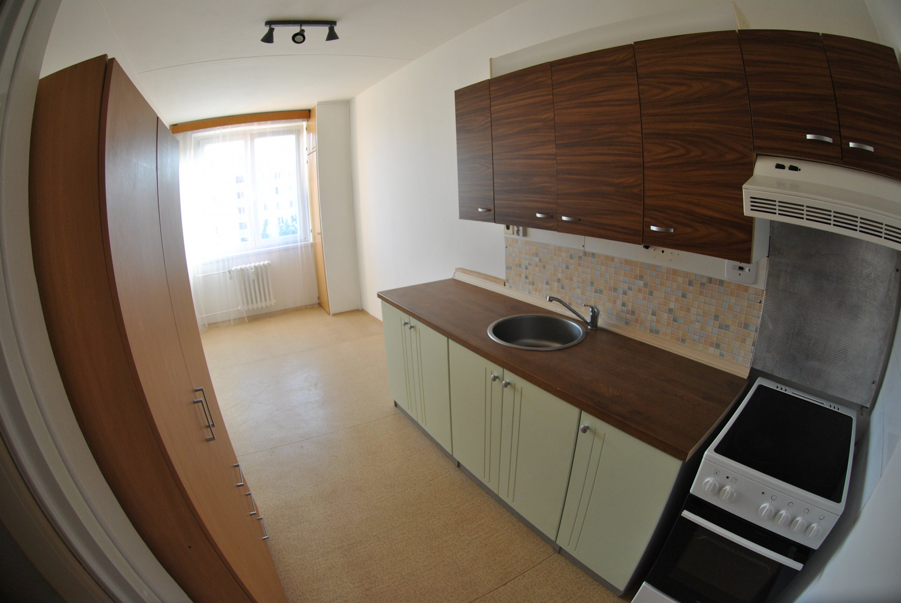 V kuchyni je trouba, mikovlnka, vysoká lednice s mrazákem, dostatok uložného prostoru na potraviny. Na fotkách to nie je, ale v reále je v kuchyni kuchynský stul a židle.