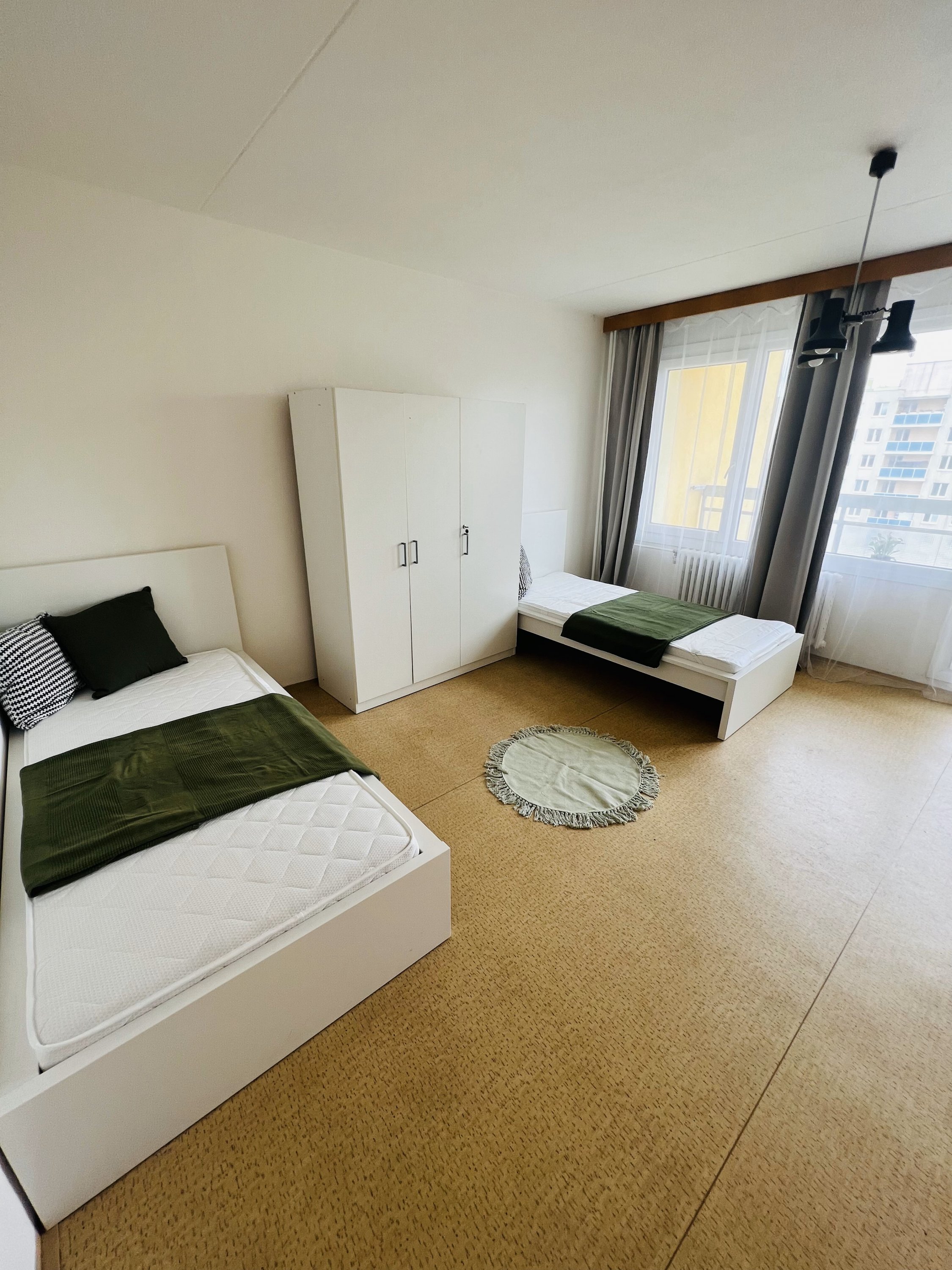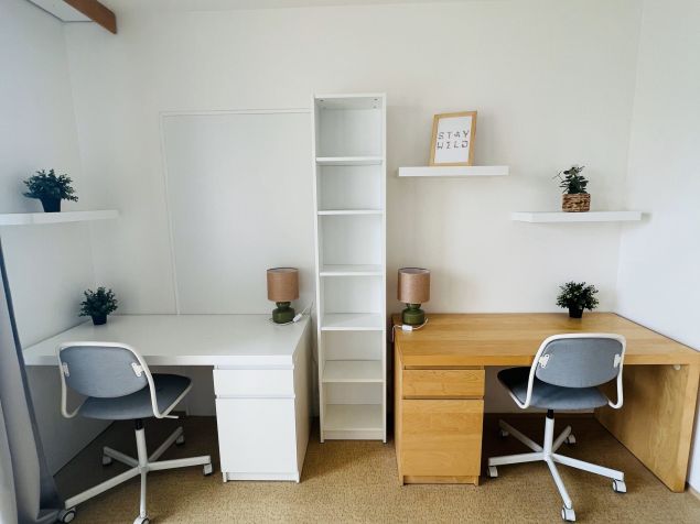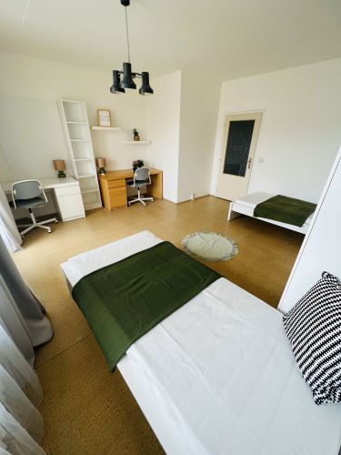 In the spare room there are 2 beds, 2 tables, 2 chairs and a wardrobe + balcony. The bed is available from 1.1.2023.