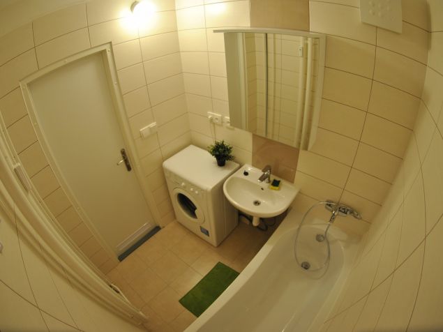 The kitchen has an oven, mikovlnka, high fridge with freezer, plenty of storage space for food. In the photos it is not, but in real there is a kitchen table and chairs in the kitchen.