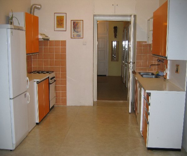 Velká společná kuchyně 20m2 s ledničkou, myčkou, plynovým sporákem, mikrovlnkou, v koupelně je pračka. Internet Gigabit. Topení samostatnými wav kamny v každém pokoji.