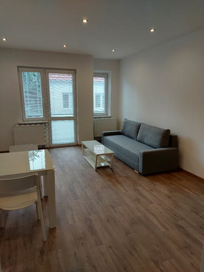 Na byt jsem přivezla mikrovlnnou troubu a stůl s židlí, který je možno odkoupit - vše potřebné se tudíž už v bytě nachází.