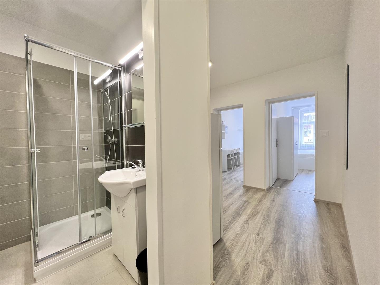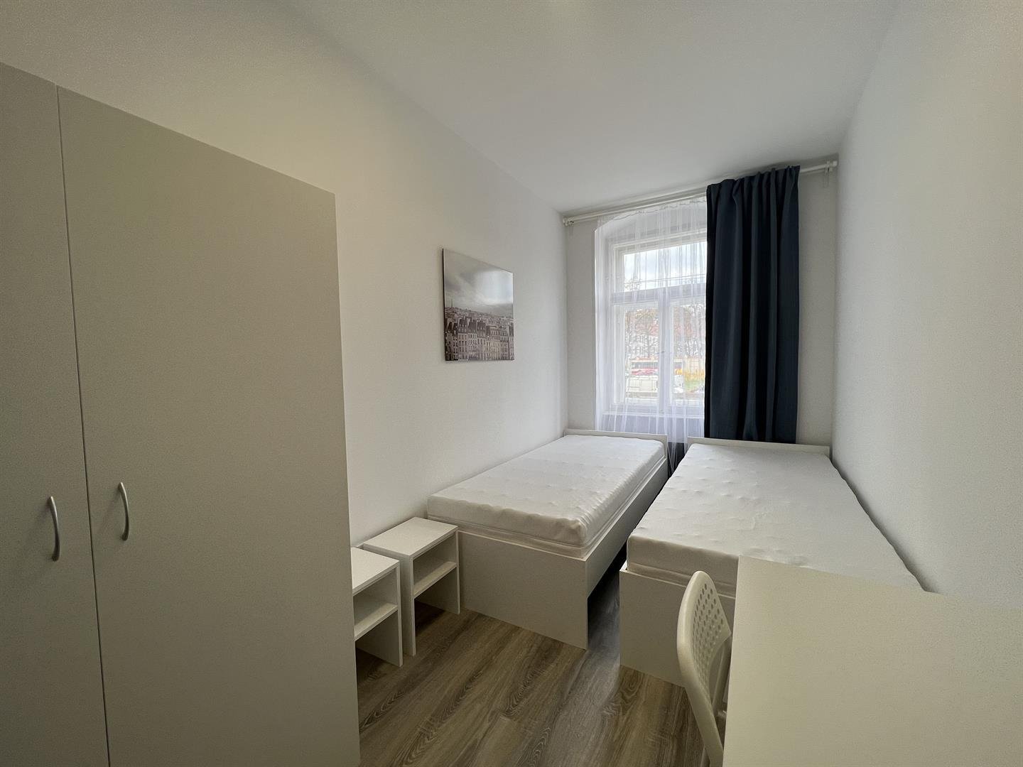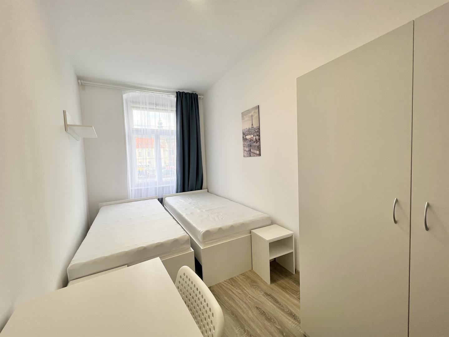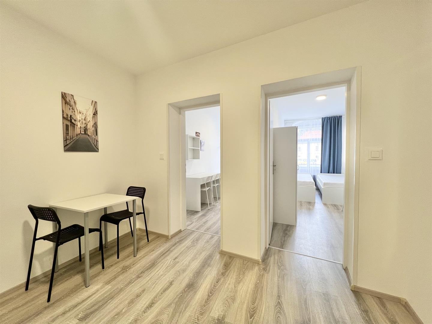 Jedná se o pronájem kompletně vybavené bytové jednotky o velikosti 2+1. K dispozici je moderní kuchyně včetně lednice, sklokeramické desky, mikrovlnné trouby, varné konvice, digestoře a dřezu. Zároveň se v kuchyni nachází jídelní stůl se židlemi. Bytová jednotka dále nabízí dva vzájemně neprůchozí pokoje. V každém pokoji naleznete dvě prostorné postele s pohodlnou matrací. U postele dále naleznete noční stolek s lampičkou. Každý pokoj má dva pracovní stoly s úložným prostorem, dvě pohodlné židle a prostornou skříň. Tento byt je tedy kompletně zařízen až pro 4 osoby. Koupelna nabízí sprchový kout, záchod a umyvadlo se zrcadlem. Součástí jednotky je internetové připojení. Ke každé bytové jednotce nabízíme možnost sjednání parkovací karty s 50% slevou.