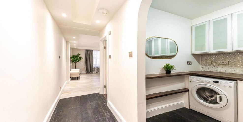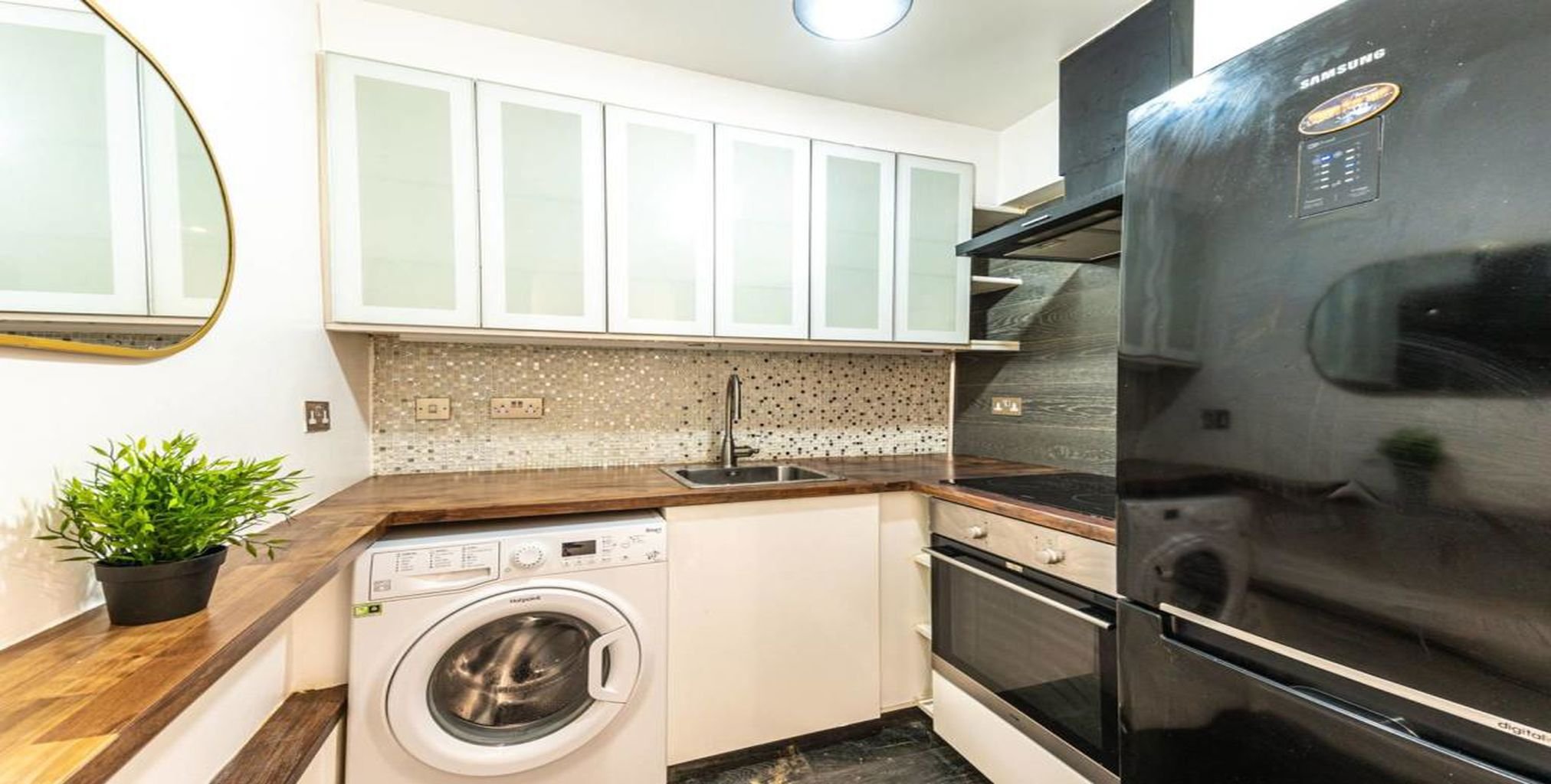 Kompletně zrekonstruovaný byt se dvěma pokoji, dvěma koupelnami, vybavená kuchyň, sporák, trouba, mikrovlnná trouba, lednice...