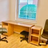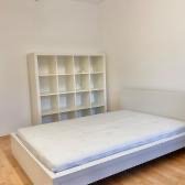 Volný pokoj je neprůchozí, vybavený velkou šatní skříní, dvoulůžkem, psacím stolem, kancelářskou židlí, wifi. Sdílená kuchyňka s vybavením a jídelním koutem, koupelna s pračkou, samostatné WC, chodbičky.