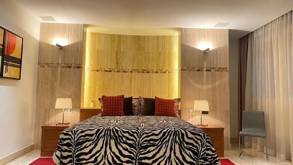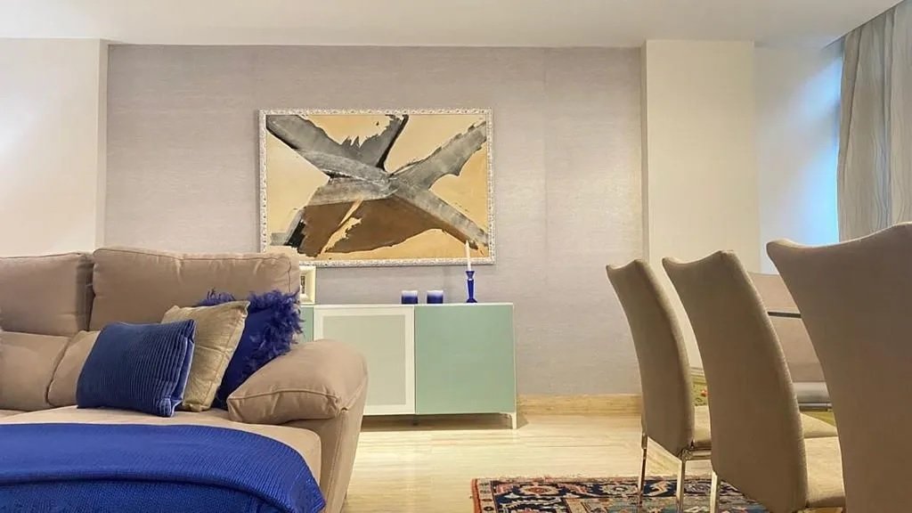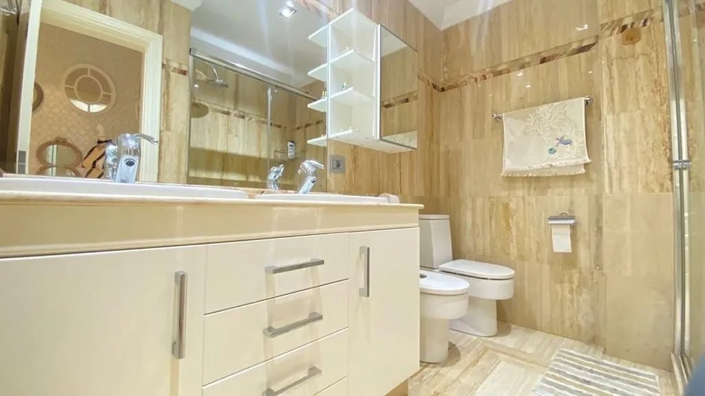 Zařízený byt, složený ze 2 ložnic, obývacího pokoje, vybavené kuchyně, 2 koupelen.
