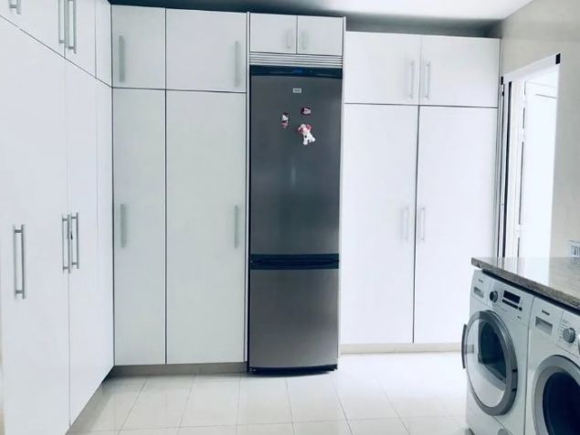 Byt je zařízený a vybavený, pračka, myčka, mikrovlnná trouba, fén, lednice, sporák atd.