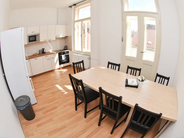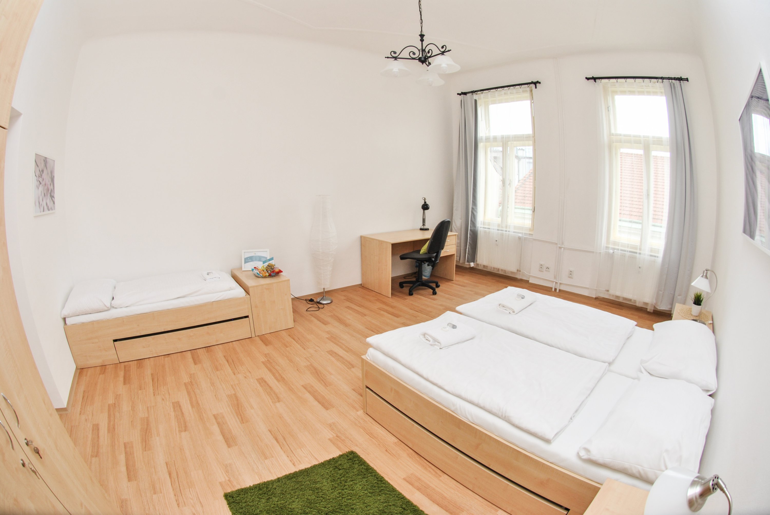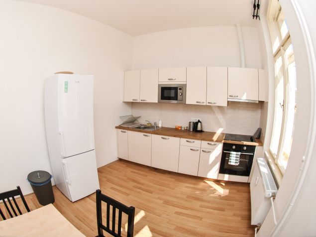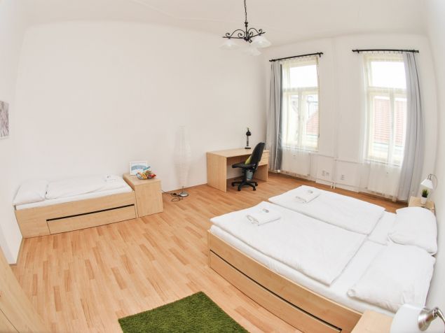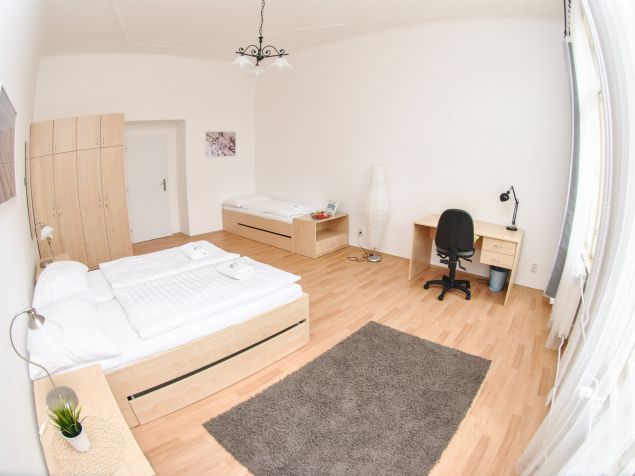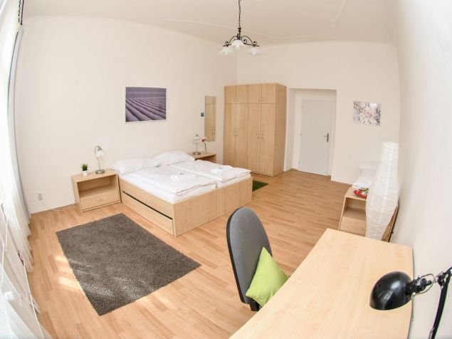 Byt je čerstvo po rekonštrukcii vrátane nového nábytku. Celkom sú v byte 2 pokoje s 2-3 lůžkami. Jedna sa o komplet zariadený byt. V byte sa nachádza práčka, sporák, mikrovlnná trouba, umývačka nádobí, lednice, postele, skrine, písacie stoly, komplet vybavená kuchyňa. Byt sa nachádza v 1.patre.