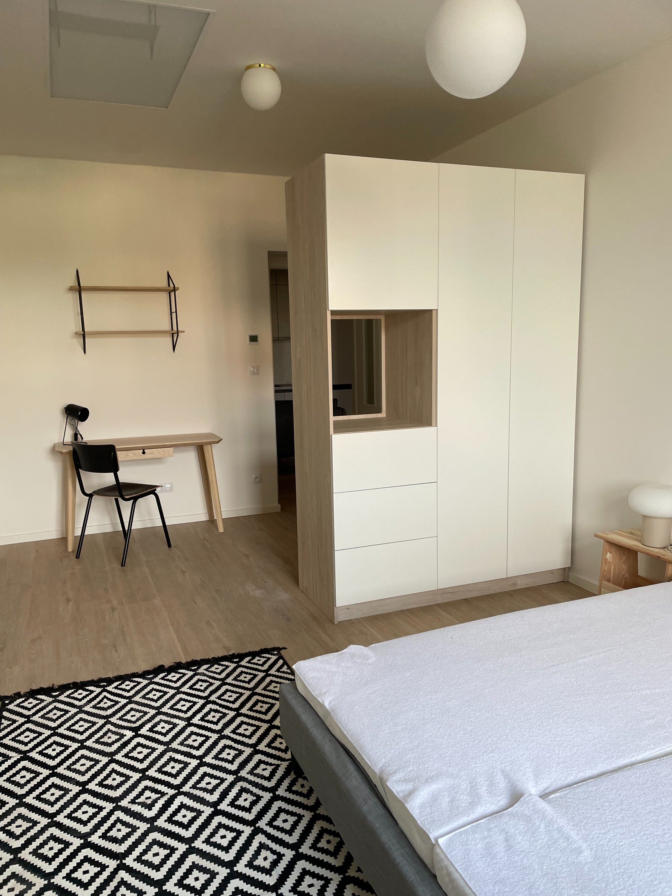 We are currently offering rooms of 16-20m2 in 4+1, 3+1 and last in 2+1 apartment. Each apartment has a shared kitchen and shared bathroom facilities. Each room has a relaxing part and a part for work. The rooms are equipped, the kitchen is equipped with basic utensils. The apartments are cleaned twice a month in the common areas. There is a dishwasher and washing machine in the apartment. The price of a standard room is 750eur/month.