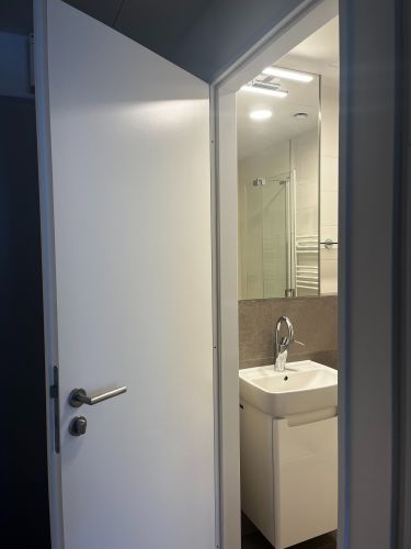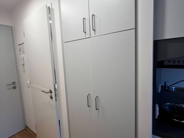 Pokoj je ve třetím patře a má výhled do zahrady. Pokoj má vlastní koupelnu (umyvadlo, sprchový kout, WC) a vlastní kuchyň (sporák s digestoří, dřez, lednice s mrazákem, mikrovlnka). K dispozici je také stůl s kancelářskou židlí, police a mnoho úložných skříní a pokoj má vlastní privátní wi-fi. Postel je široká 100 cm (39,4 palce) a je vybavena matrací a úložným šuplíkem. Nechybí ani prostorná skříň s policemi a prostorem na pověšení vašeho oblečení. Na zdi se nachází také magnetická tabule pro vaše obrázky a plakáty.