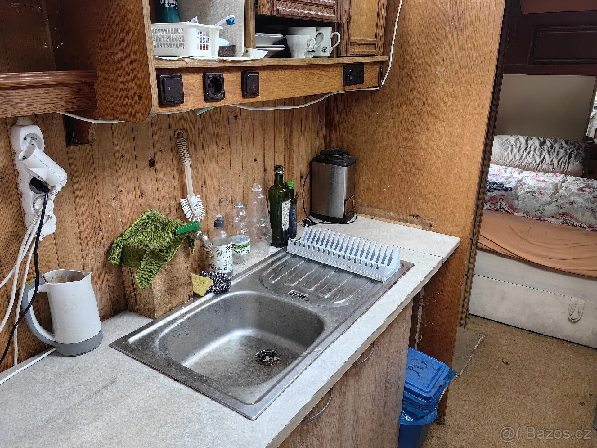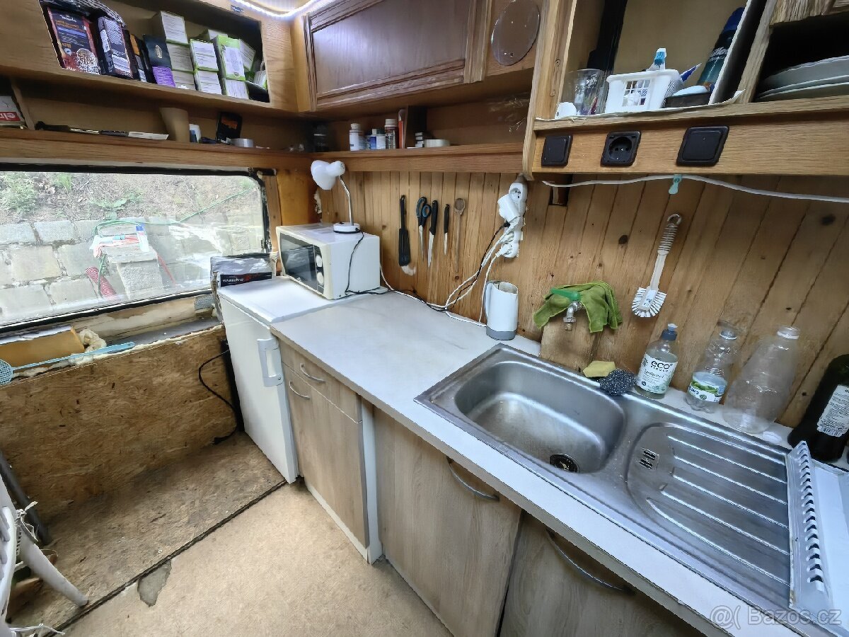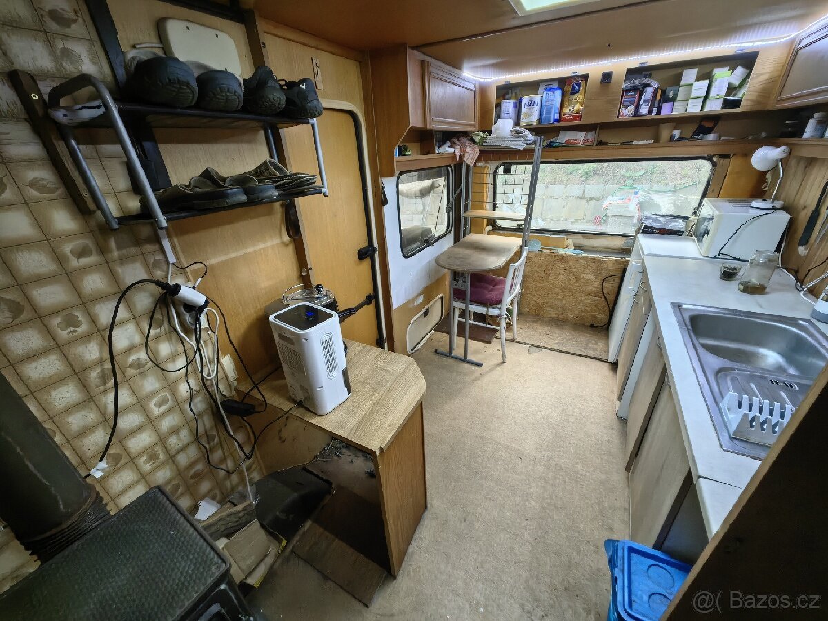 V karavanu jsem bydlel s mým kamarádem 4 semestry. Během té doby jsme jej značně upravili, aby byl použitelný pro dlouhodobý pobyt. Na pozemku kde karavan stojí se dále nachází chata, odkud má karavan nataženou vodu a elektřinu. Jelikož se za námi do Brna stěhují naše přítelkyně, chceme s nimi bydlet pospolu právě v chatě. Z toho důvodu bude karavan volný pro 1 až 2 zájemce. Ideální je toto bydlení pro studenty, kteří jezdí na zkouškové domů. Díky kamnům a přímotopu je možné v karavanu bydlet i v mrazech, není to ale příliš komfortní. Máme ověřené, že během zkouškového je to v pohodě. Karavan má tekoucí studenou vodu. WC a sprcha je k dispozici v chatě. Nejbližší zastávka je Popůvky Vintrovna, pro cesty na sever nebo Mendlák je pak rychlejší Bartolomějská/Borovník, obě cca 15min chůze.