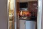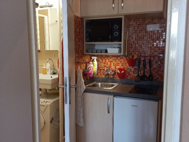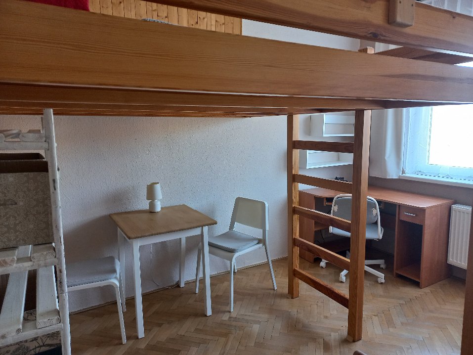 Je zde malá kuchyňka s prostornou ledničkou, indukční varnou deskou a mikrovlnkou. V koupelně je sprchový kout, toaleta a pračka. Pokoj je vybaven dvěmi pracovními stoly, dvěmi šatními skříněmi, jídelním stolem a mezonetem.