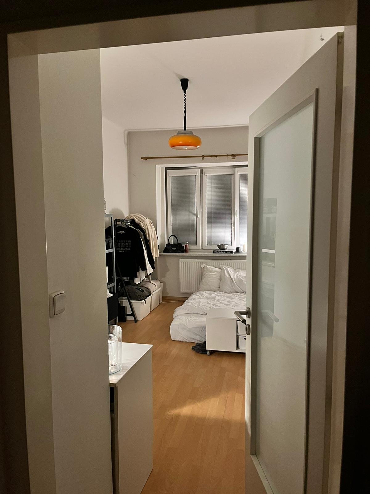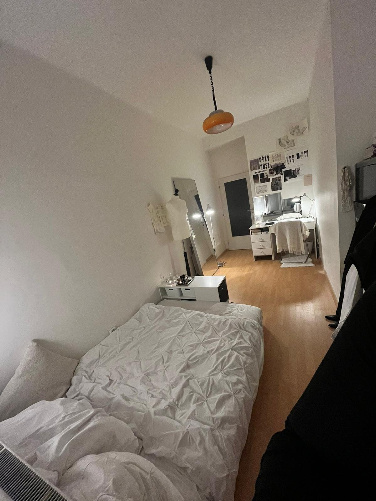 Pokoj o rozloze 13 m² je orientován do klidné ulice. Byt je čistý, dobře vybavený a má dostatek úložného prostoru, který je zahrnut k pokoji. Pokoj lze pronajmout nevybavený nebo částečně vybavený, původní nábytek je uložen ve sklepě.