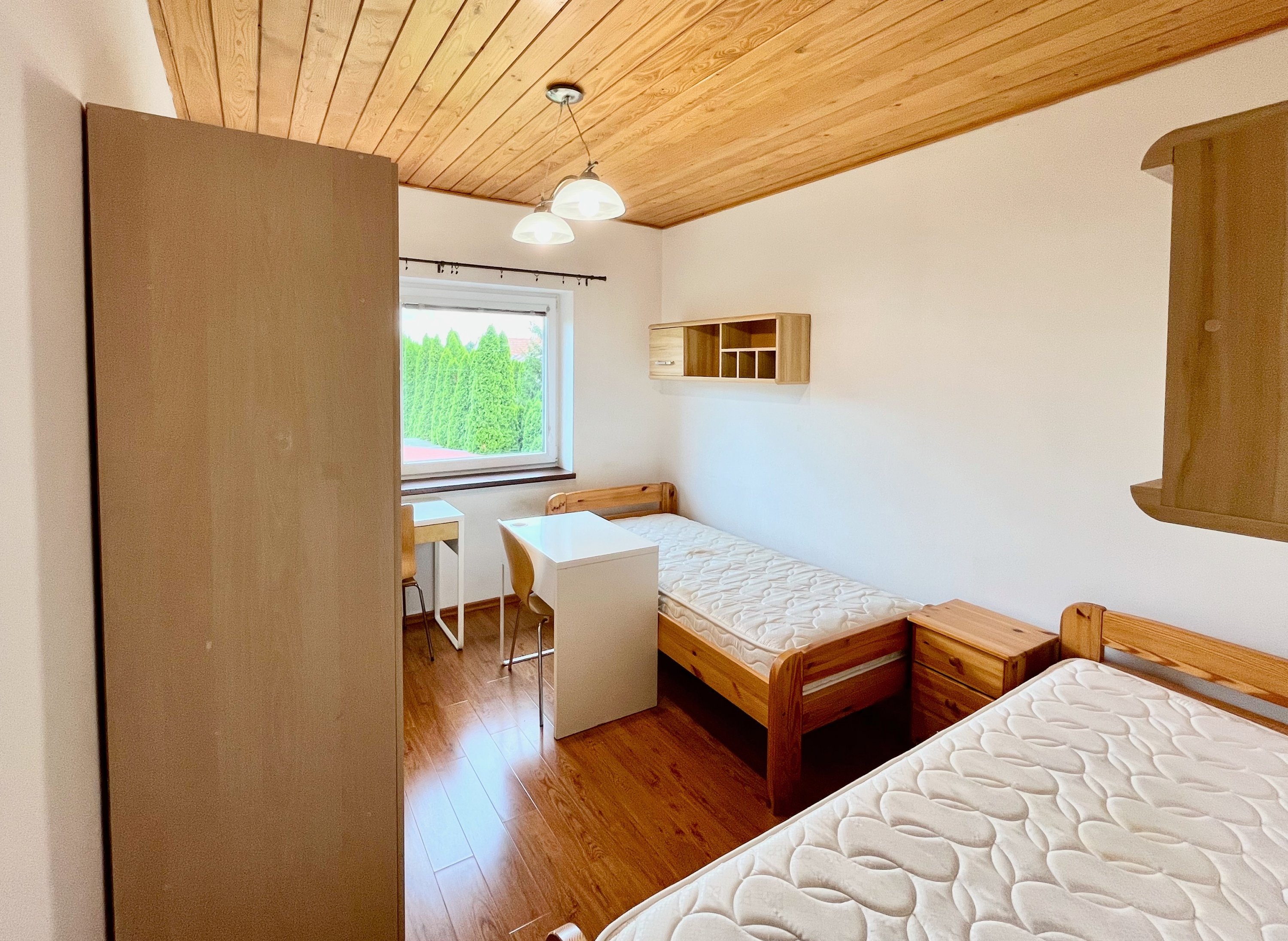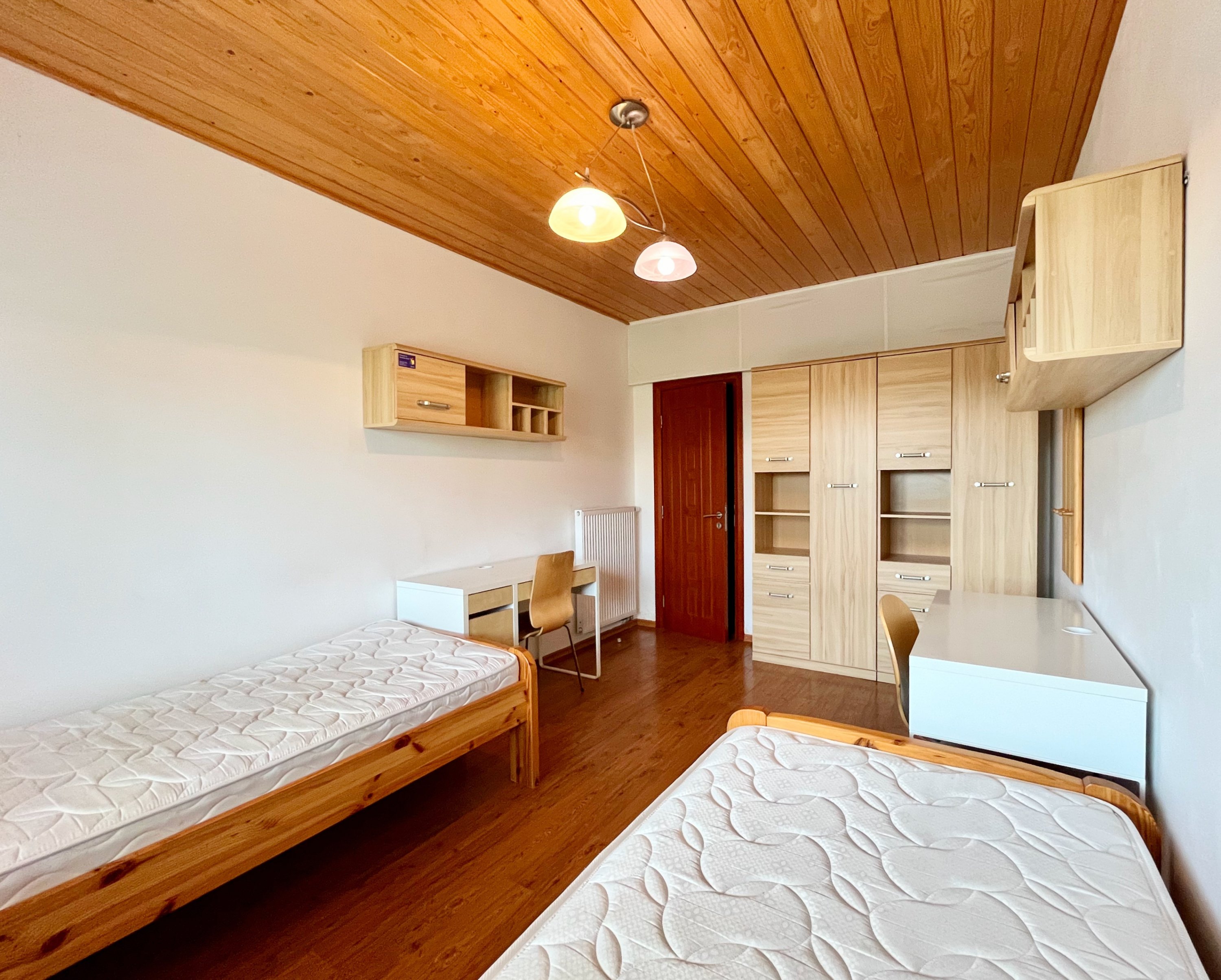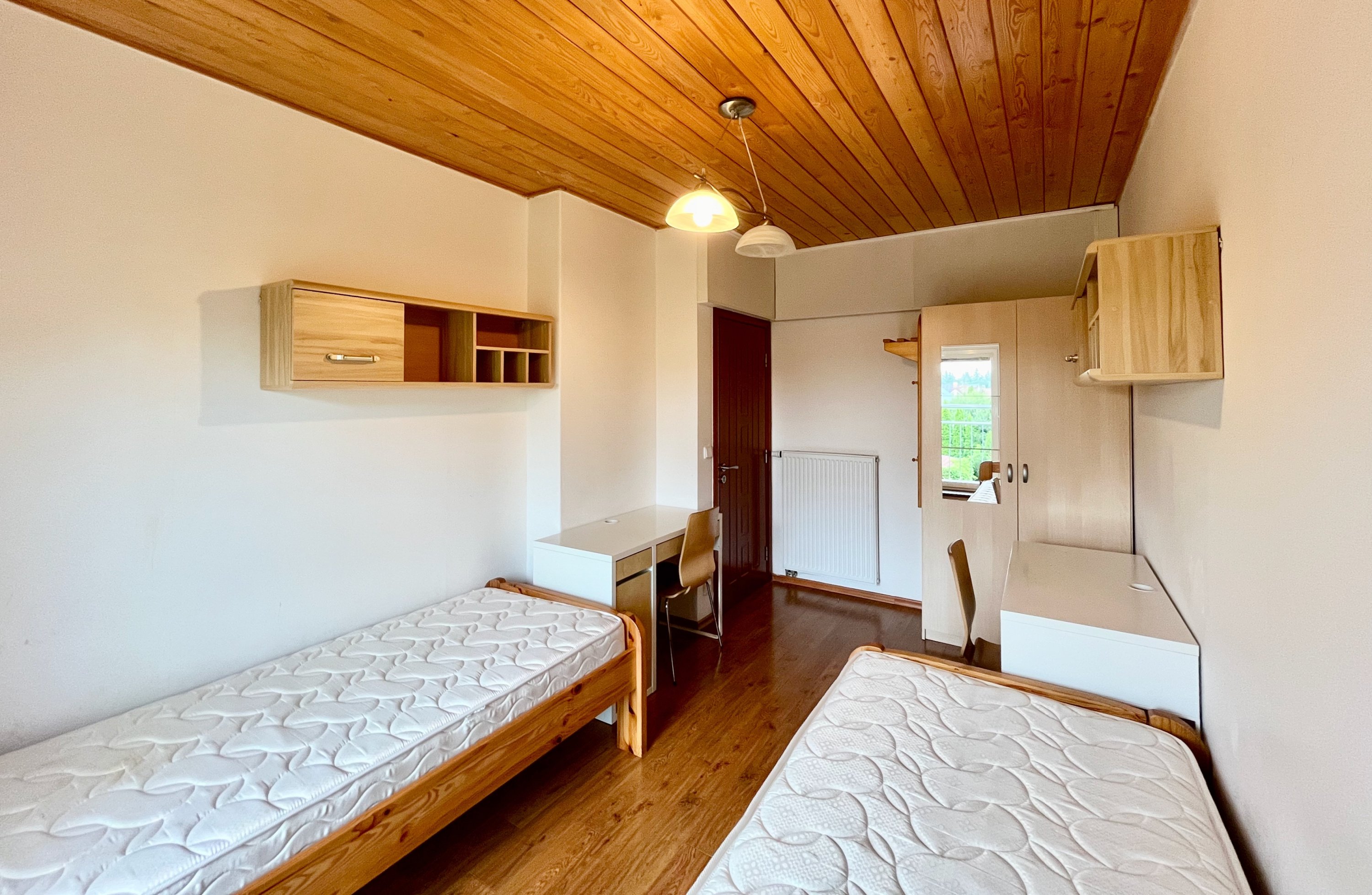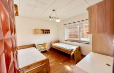 Pokoje jsou plně vybavené (postel, skříň, psací stůl, nástěnná polička) a speciálně odhlučněné pro