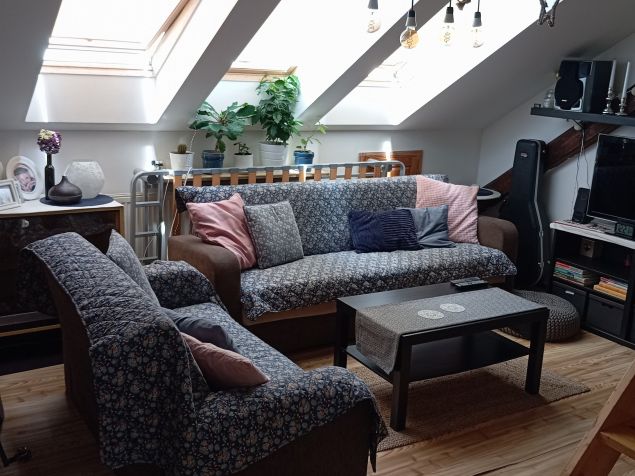 V blízkosti tram. zastávky Jugoslávská. V pokoji se nachází "půdička" ideální na spaní. Kuchyň je vybavena (el. sporák,nová lednička, toustovač, mikrovlnka, rychlovarná konvice...), dále sprchový kout a pračka. Celková plocha bytu cca 70m2, 2+1. Koupelna a kuchyň sdílená se mnou. Záloha 2 měsíce dopředu. Délka smlouvy do 1.9.2025