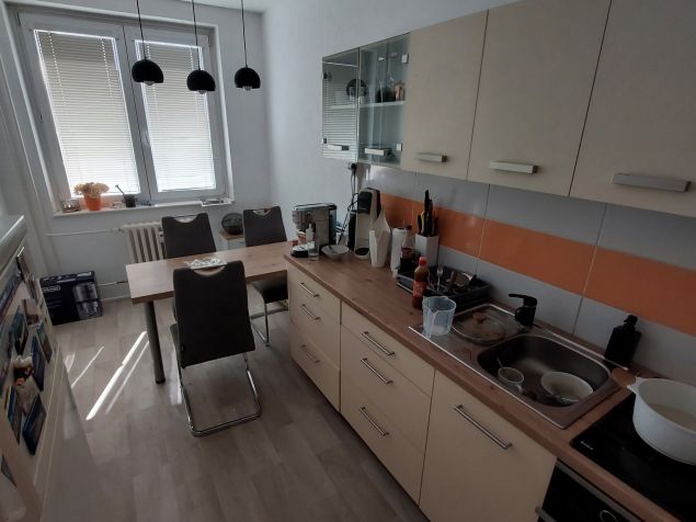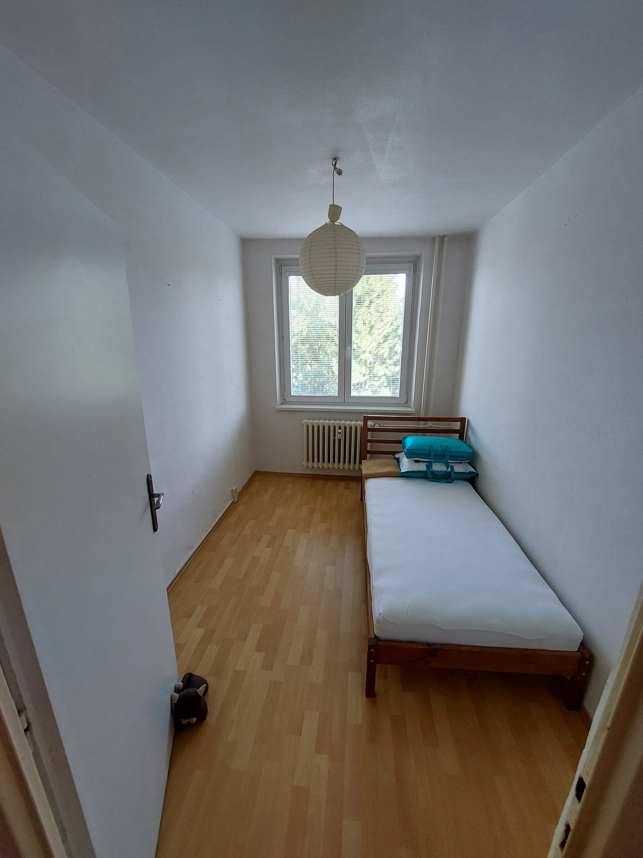 Jedná se o vlastní pokoj v 3+1 bytě. Pokoj má rozměr 2.3 metrů na šířku a 3.5 metrů na délku. V pokoji si již nachází postel včetně matrace (90x200). Byt je klasicky vybaven, to znamená 4 plynové vařiče, trouba, ostatní zakládání vybavení kuchyně. Sprchový kout, pračka. Oddělený záchod. V bytě se nachází obývák, který je však kompletně prázdný a proto je používán jako místo pro sušení oblečení, žehlení, posilování a místo pro odložení kola. Byt má i vlastní balkón, který je minimálně používán.