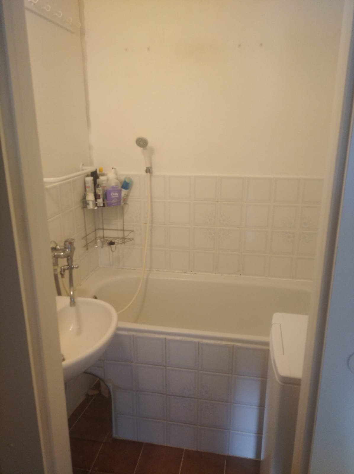 V bytě je samostatné Wc a samostatná koupelna s vanou a pračkou. Kuchyň plně zařízená s lednicí, mikrovlnnou troubou, plynovou troubou a sporákem.