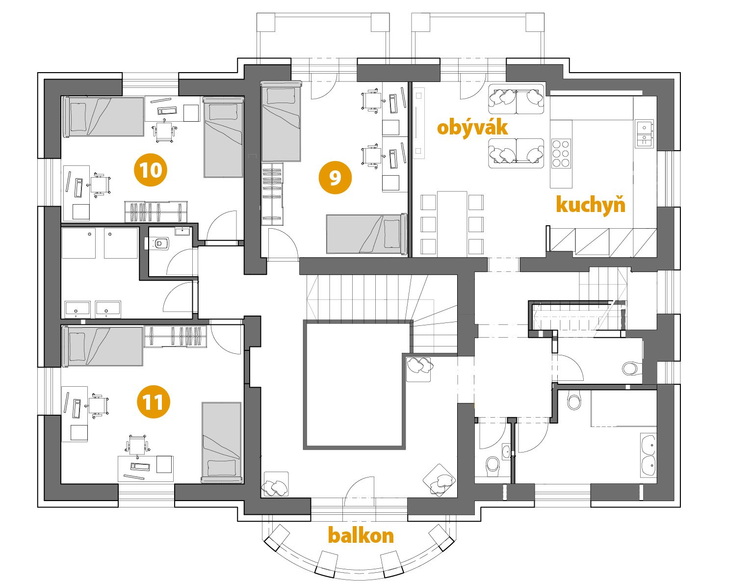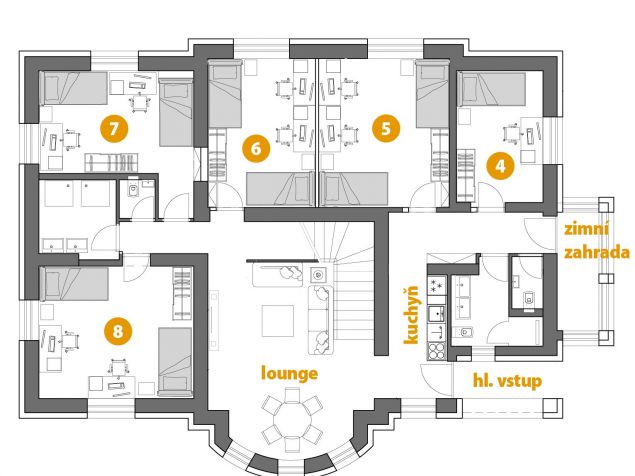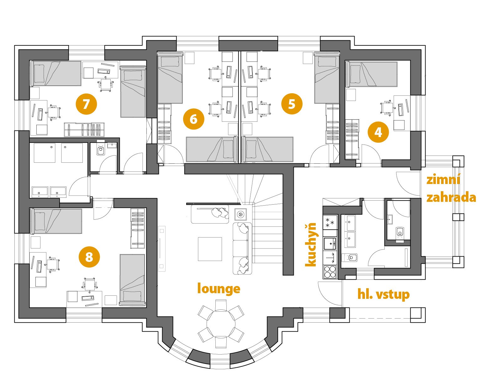 Nechceme vám zasahovat do vkusu a určovat, v jaké atmosféře budete bydlet. Přijďte si prohlédnout vilu, vyberte si pokoj a vymyslete si, jak z něj uděláte domov. Nebo nejdřív mrkněte web Eduvilly.