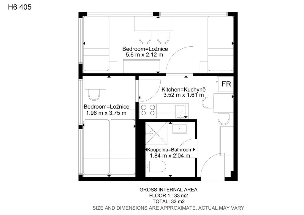 Nabízíme k pronájmu jednotku H6.405 o celkové výměře 33,96 m2, která je k dispozici od 1.9.2024. K dispozici je ve stejném komplexu několik jednotek ve velikosti 1+kk, 2+kk a 2+1 pro 2- 4 osoby k dispozici od dřívějšího data.