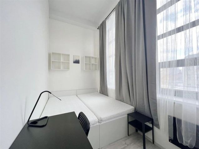 Jedná se o pronájem nově zrekonstruované jednotky o dispozici 2+1, která je nabízena plně vybavená. V jednotce se nachází prostorná kuchyně, která je vybavena lednicí, mikrovlnnou troubou, varnou konvicí a sporákem s troubou. V jednotce se dále nachází dvě oddělené ložnice. Každá ložnice je vybavena dvěma postelemi s nočními stolky, dvěma pracovními stoly s úložným prostorem a židlemi a prostornou skříní. Koupelna nabízí sprchový kout, záchod a umyvadlo se zrcadlem. K dispozici je příprava pro připojení vlastní pračky.