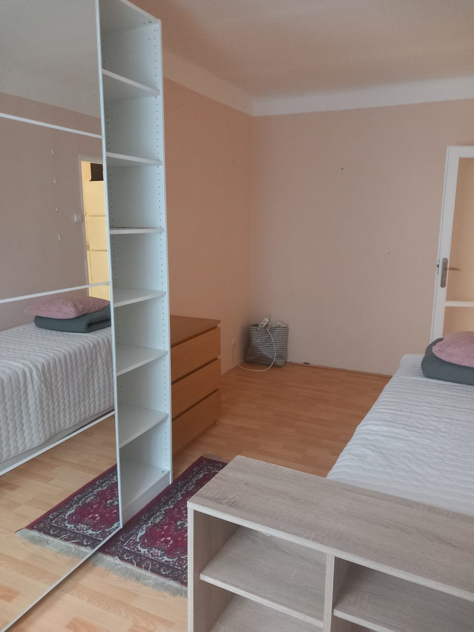 Nabízím k pronájmu pokoj ve čtyřpokojovém bytě. Pokoj je částečně zařízen - nové rozkládací lůžko, skříně a komoda. Byt je po částečné rekonstrukci. Nové podlahy, nová koupelna se samostatným WC. Vybavená kuchyň - pračka, myčka, lednice, trouba, mikrovlnná trouba. Společný prostor jídelny s pohovkou.