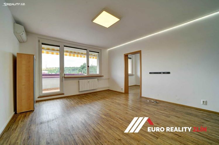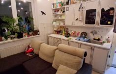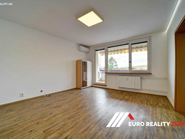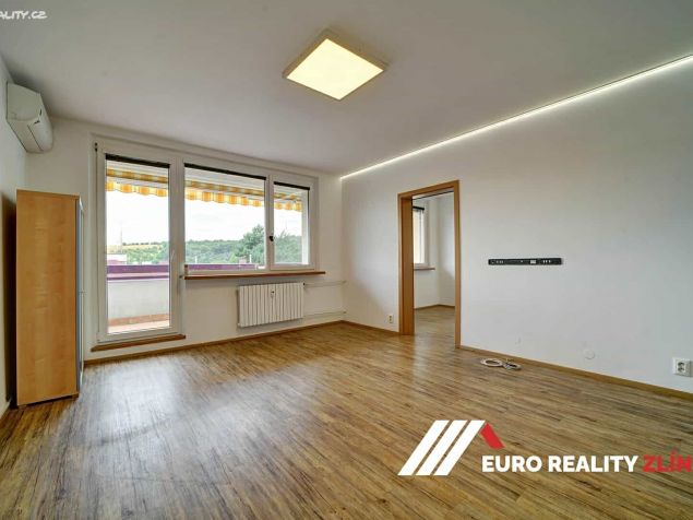 * Pokoj 1 (obývací pokoj) – gauč, skříň (průchozí, ale za to velký pokoj s přístupem na balkon)
