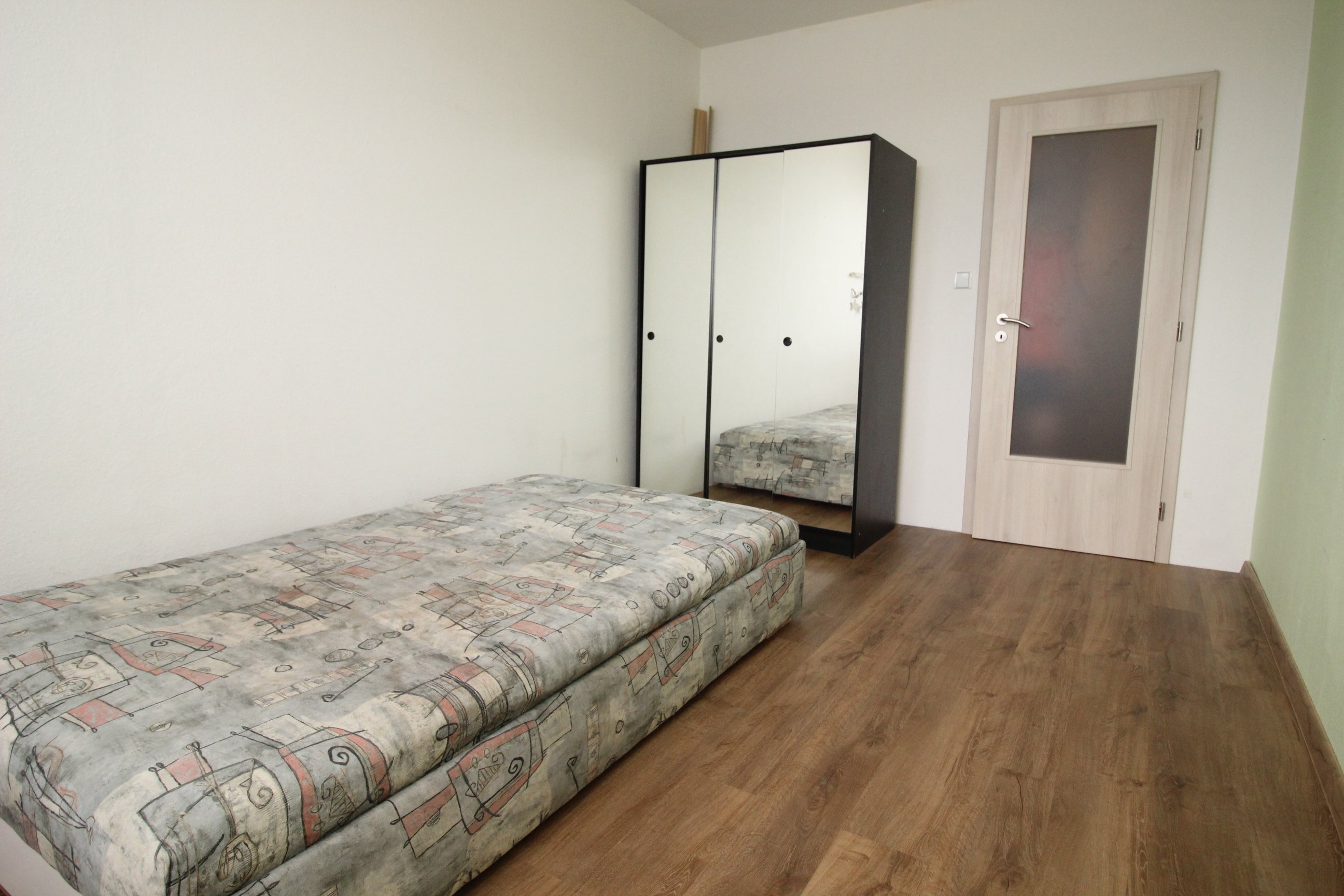 Pokoj je světlý, má novou vinylovou podlahu, zařízení postel, šatní skříň, pracovní stůl. Kompletně vybavená kuchyň, lednice, sporák, trouba, pračka. Dům je také po kompletní rekonstrukci, nový výtah, fasáda, zateplení. Spolubydlící jsou dvě mladé ženy, nekuřáci, bez zvířat.