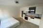 The apartment, with a total area of 27 m², is located on the 4th floor of a brick building with an elevator and is facing south towards a quiet courtyard. The apartment is sunny with outdoor electric blinds. The courtyard is equipped with a camera system and chip access.