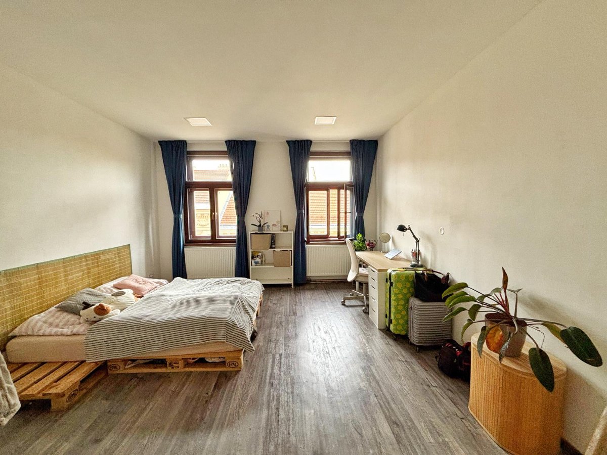 Ahoj:) Nabízím k pronájmu prostorný pokoj s vysokými stropy o velikosti 24 m2 ve zrekonstruovaném bytě na ulici Bezručova, v rozšířeném centru Brna s výhledem na Petrov. Byt se nachází 150 m od zastávky Hybešova (tramvaj 1, 2) a 200 m od zastávky Křídlovická (tramvaj 8, 12). Byt je 5. patře cihlového domu s výtahem. Jedná se o studentský byt 3+1 s příjemnou atmosférou, kde v dalších dvou pokojích bydlí celkem tři studenti. Pokoj je určen pro dvě osoby, v případě zájmu je možné odkoupit aktuální vybavení nebo jeho část, měsíční nájemné na osobu je 6 000 Kč + 1 000 Kč záloha na služby (za pokoj celkem tedy 12 000 Kč + 2 000 Kč zálohy na služby) . Kauce je 12 000 Kč. Možnost nastěhování k 1. 7. 2025. Byt je vhodný pro někoho, kdo ocení spíše klid a čistotu a nehledá úplně párty byt. Preferujeme nekuřáka, bez mazlíčků.