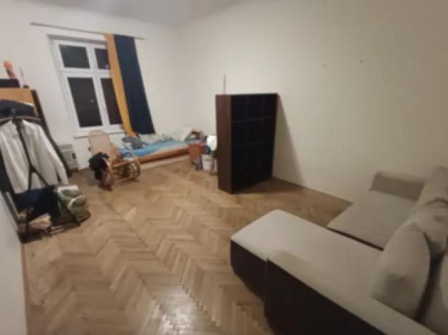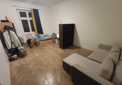 Pokoj disponuje rozkládacím gaučem a policí, které zde spolubydlící nechal.