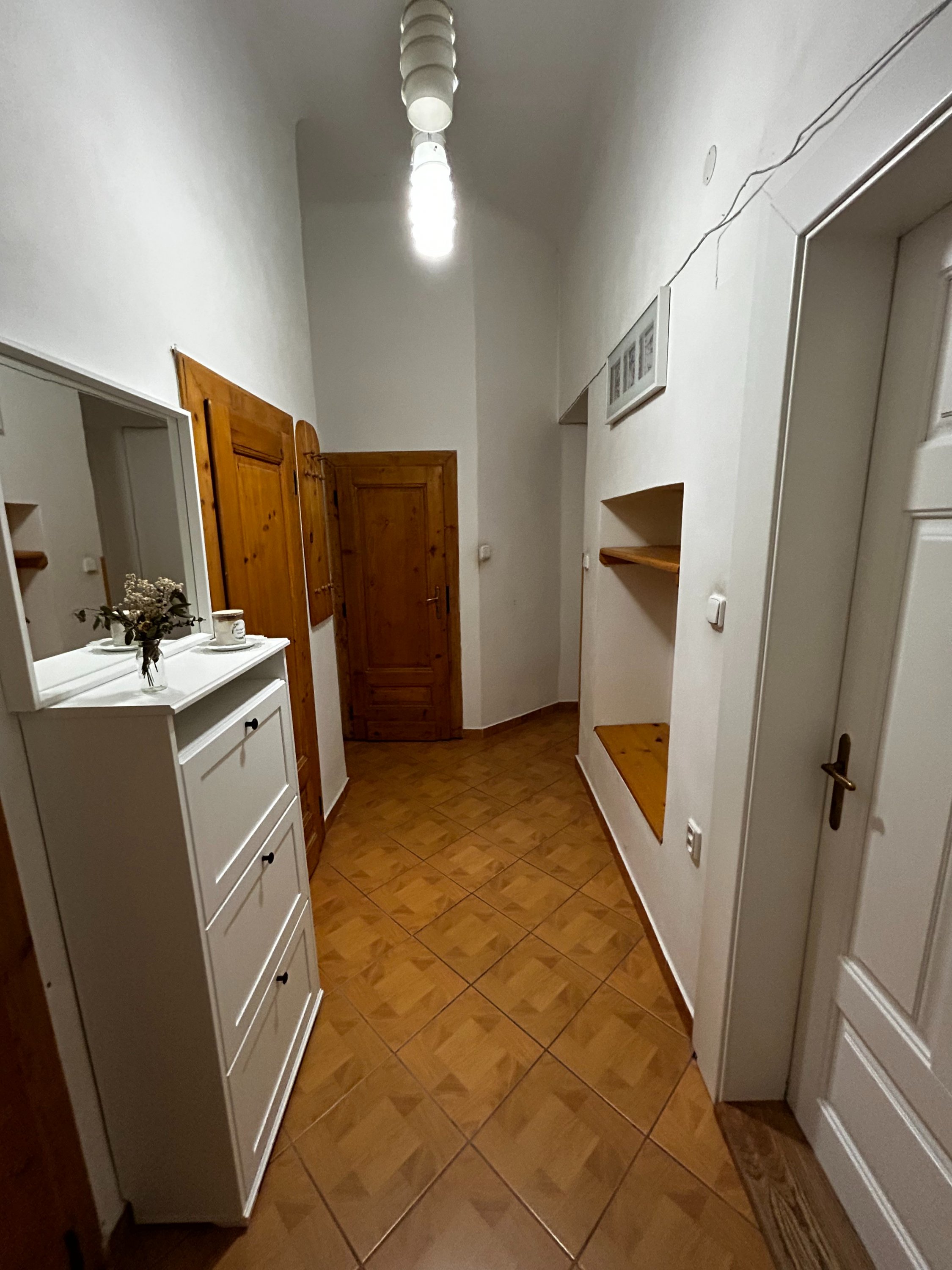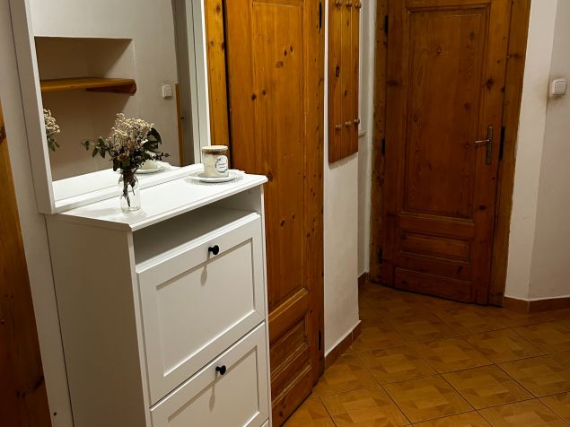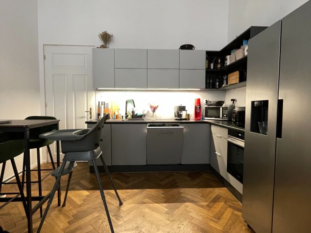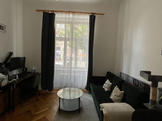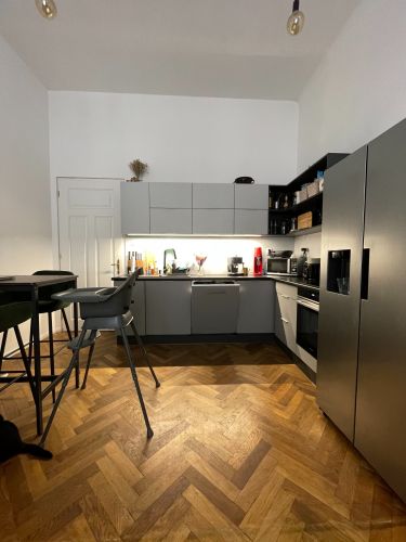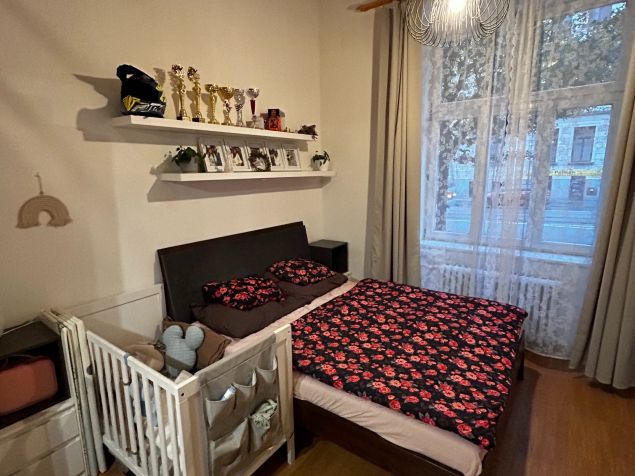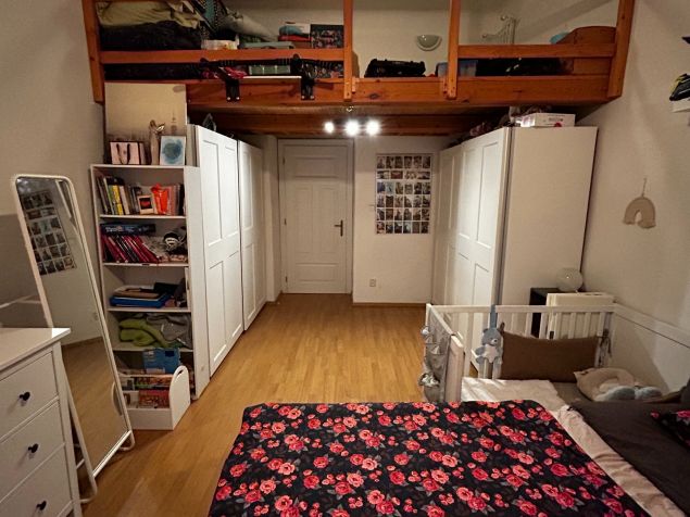 Byt je umístěn v bezprostřední blízkosti Fakulty stavební VUT a Právnické fakulty MUNI. Velmi dobrá dostupnost do centra města. Jedná se o byt o rozloze 55 m2, se sklepem. Dispozice je 2kk, ložnice je mezonetová. Byt je po částečné rekonstrukci, ideální pro 3 osoby. Jeden pokoj slouží jako ložnice, druhý jako kuchyně s obývacím pokojem. Byt má vysoké stropy a proto je ložnice na výšku rozdělená "mezonetem". Kuchyně je vybavena nádobím, lednicí, myčkou. Koupelna se sprchovým koutem je vybavena pračkou. Wc je situováno samostatně.