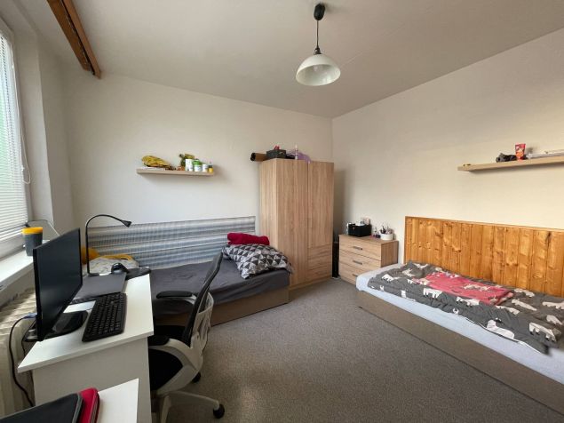 Ponúkam 2-lôžkovú, plne zariadenú, nepriechodnú izbu na byte na Kráľovom Poli, pri zastávke Technické múzeum. Cena za osobu je 6 200kč, vrátane energií a internetu. Byt je vybavený práčkou, chladničkou, mikrovlnkou.