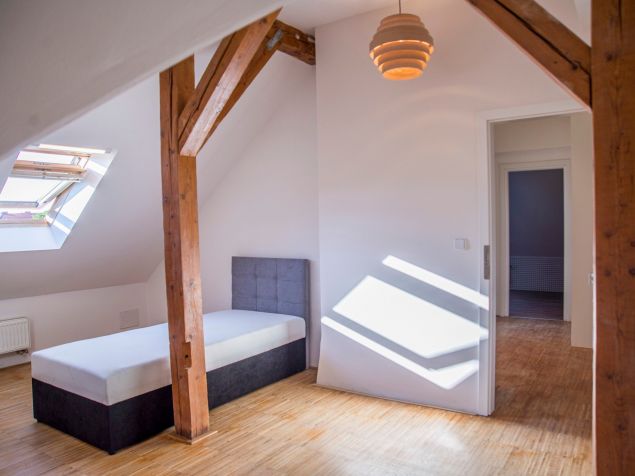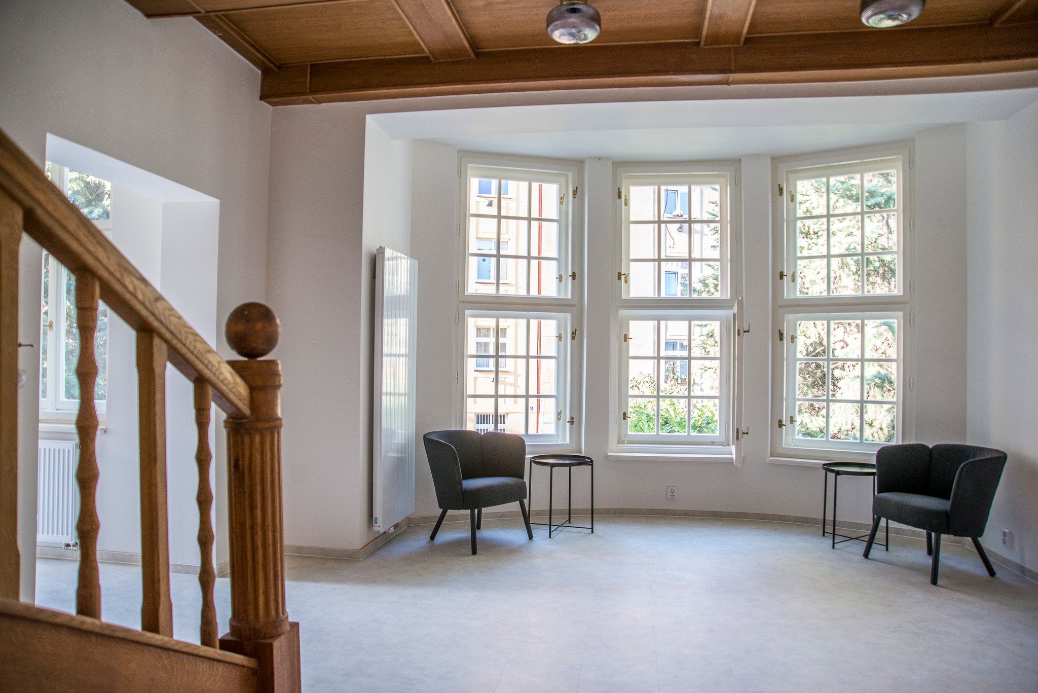 Částečně zařízené pokoje v plně vybavené a kompletně zrekonstruované EDUVILLE. Pokoje jsou určené k bydlení a automaticky získáváte přístup ke všem společným prostorám vily, včetně kuchyní, obývacích pokojů, studovny, prádelny a zahrady.