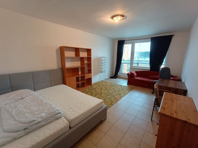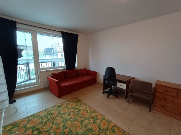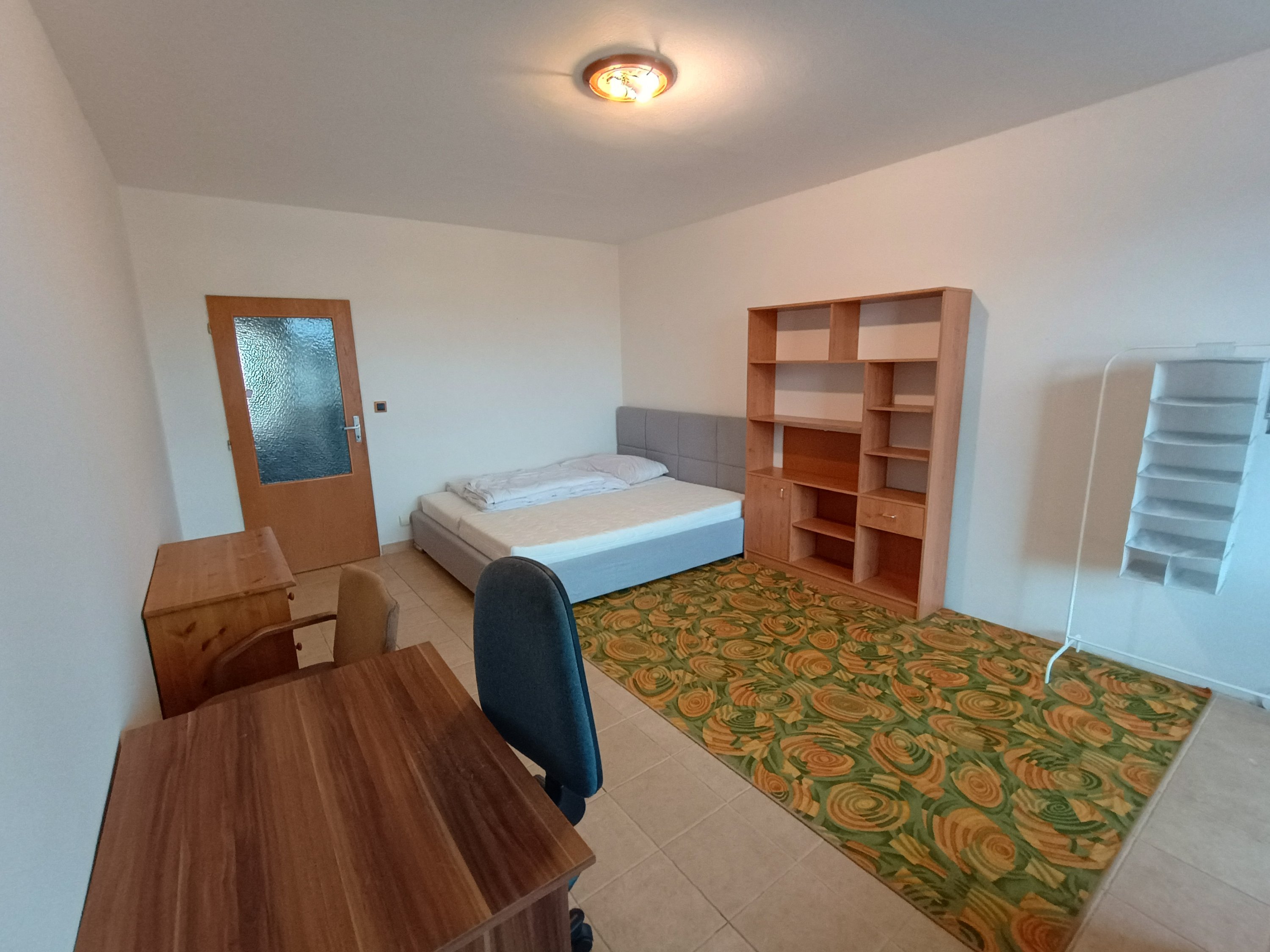 Nabízíme k pronájmu pokoj o velikosti 21m2 v Holešovicích, 1 minutu od tramvajové zastávky Tusarova (2 zastávky tramvají od Vltavské, 2 zastávky od Palmovky). Pokoj je vybaven pohovkou, psacím stolem, skříní a kobercem. Po dohodě se současným nájemníkem je možno odkoupit postel. K pokoji přísluší prostorný zasklený balkon s krásným výhledem.