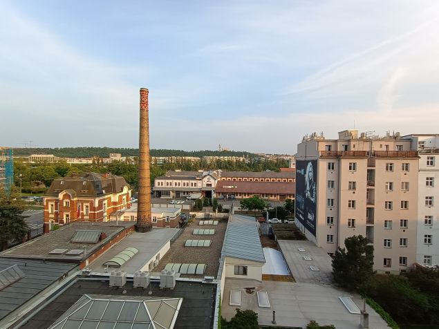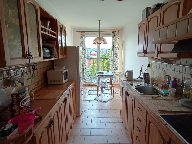 Byt je světlý (6. patro a z žádné strany nejsou vysoké budovy) a celkově útulný. Ve zbývajících dvou pokojích bydlí 1 muž a 1 slečna oba ve věku okolo 30 let, každý ve svém pokoji. Možnost využití sklepa, kočárkárny/kolárny a společné zahrady.