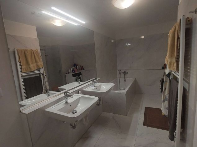 Pronájem bytové jednotky o dispozici 3+kk a podlahové ploše 67,4 m2 v zástavbě bytových domů v těsné blízkosti parku Stromovka v Českých Budějovicích, lokalita Na Sádkách. Nabízený byt je v nedávno dokončeném komplexu bytových domů, je umístěn ve 5. patře a k bytu náleží prostorný balkon ( 6,3 m2), sklep a garážové stání v 1.PP. Součástí bytu je nová kuchyňská linka vybavena elektrickou troubou, samostatnou varnou deskou, odsavačem par, lednicí a myčkou, dále je součástí potravinová skříň. V koupelně umístěn sprchový kout a vana, samostatně stojící pračka. Samostatná toaleta. Na podlaze položena plovoucí podlaha a dlažba. Orientace bytu na východní stranu.