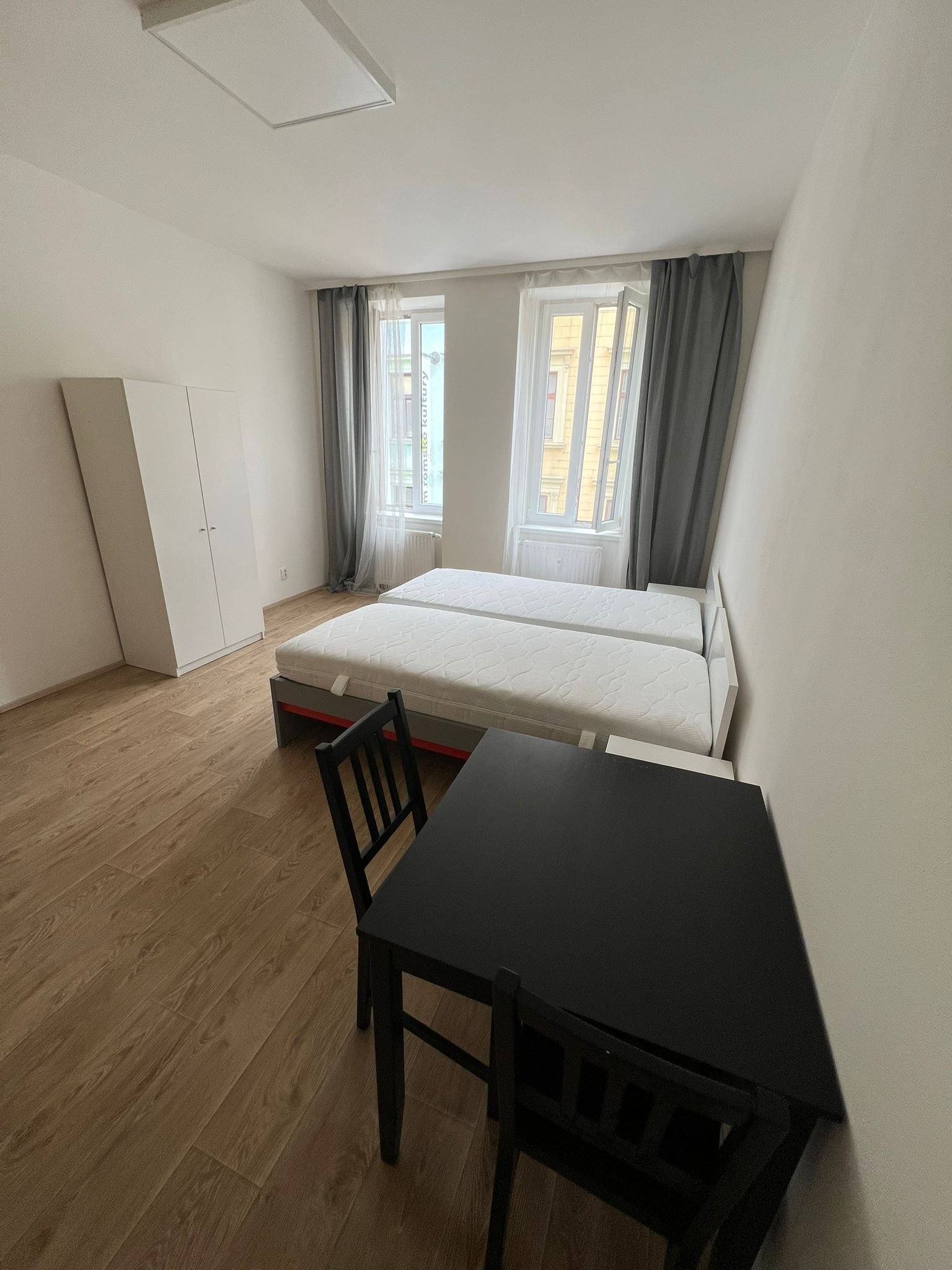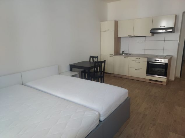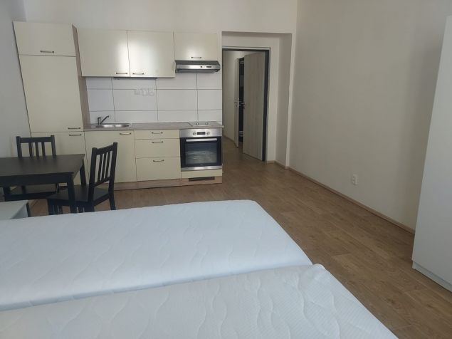 We offer a free apartment 1+kk for 1-2 people on Bratislavská street near the city center. The apartment has a total of 1 room with a kitchenette and a bathroom with a toilet. The room is equipped with two beds incl. mattress.