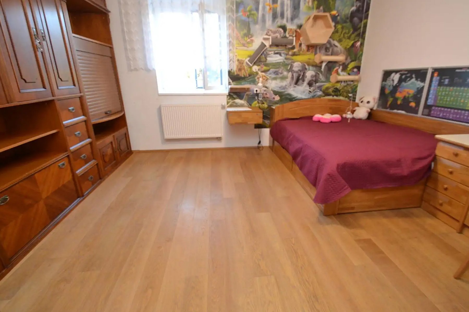 Pokoj vybaven širokou postelí, řadou skříní, pracovním stolem se zásuvkami a skládacím stolem, topením a klimatizací. Na patře k dispozici koupelna s WC a místnost s dřezem, obojí sdílené s druhým nájemníkem. V suterénu lednice, pračka a sušička, také sdílené s druhým nájemníkem. WiFi a přiměřená spotřeba vody a energií (elektřina, teplo, plyn) v ceně. Možnost pronájmu parkovacího místa.