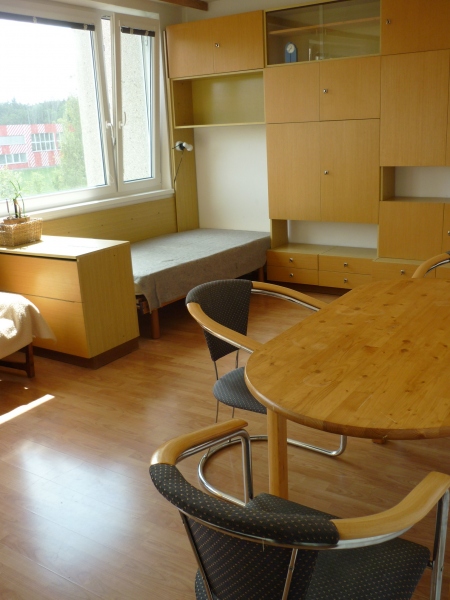 Fully accomodated sunny flat 1+kk nearness Krč´s forest, high speed internet, fit for runners and cyclists, dormitory VŠE and VŠCHT 1 station by bus. All community facilities nearby, centrum Chodov included. Metro line C, Roztyly or Chodov station 5 minutes by food.