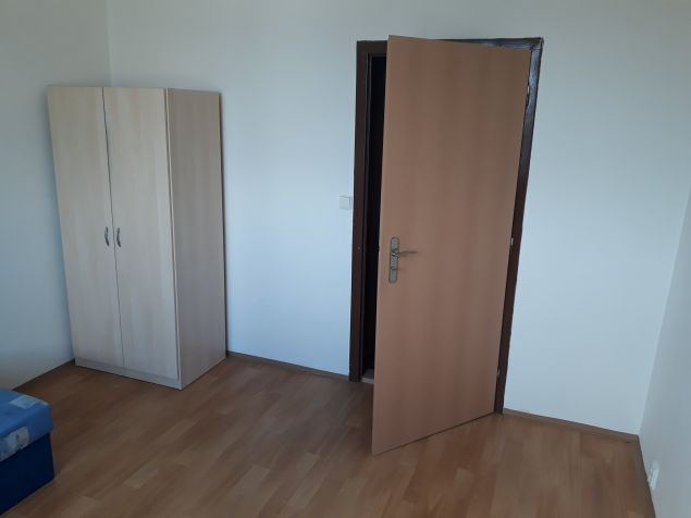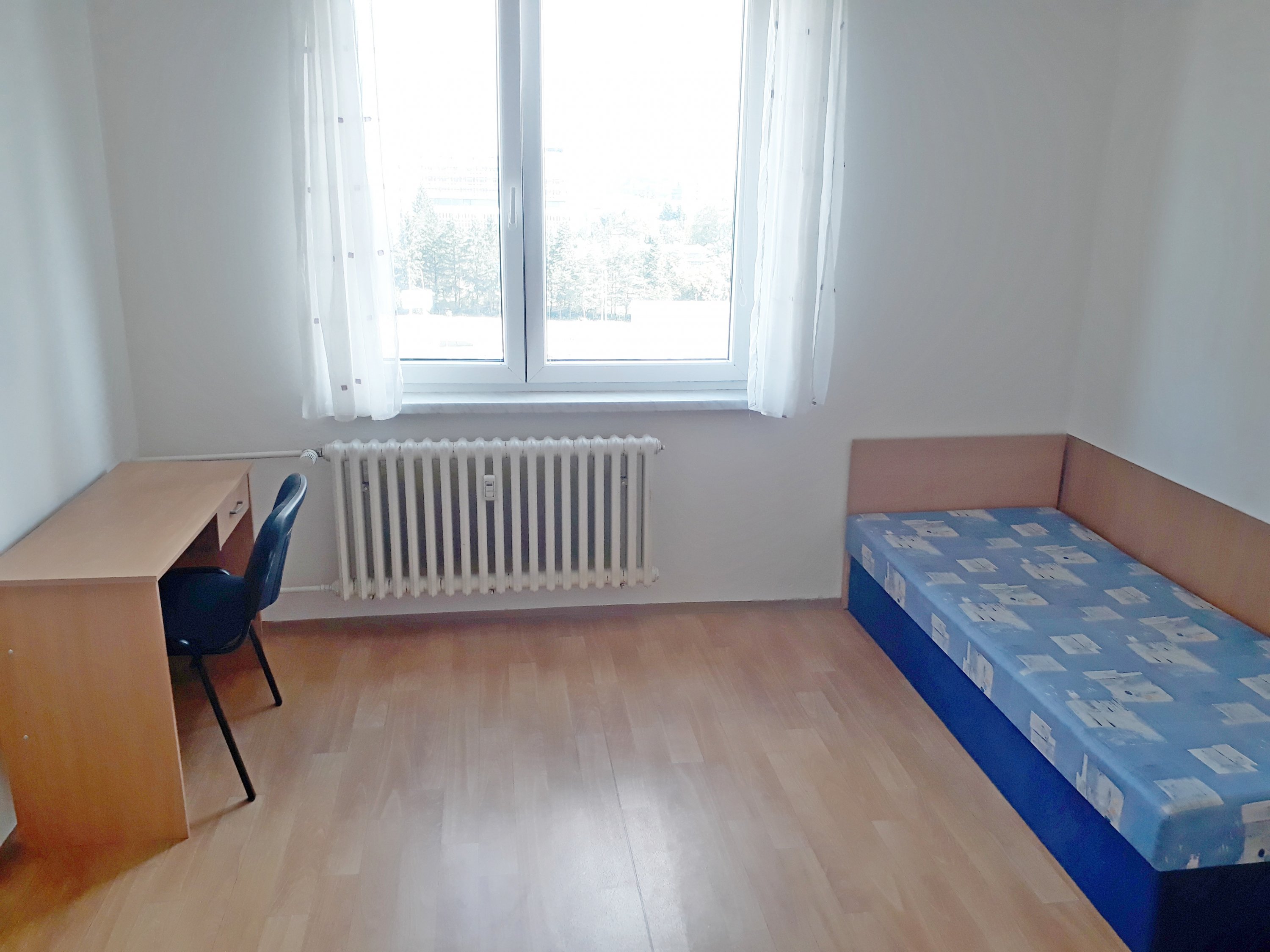 Neprůchozí pokoj, studentsky vybavený (postel, skříně, židle, stůl) pro jednoho za 6500 Kč (včetně internetu a služeb).