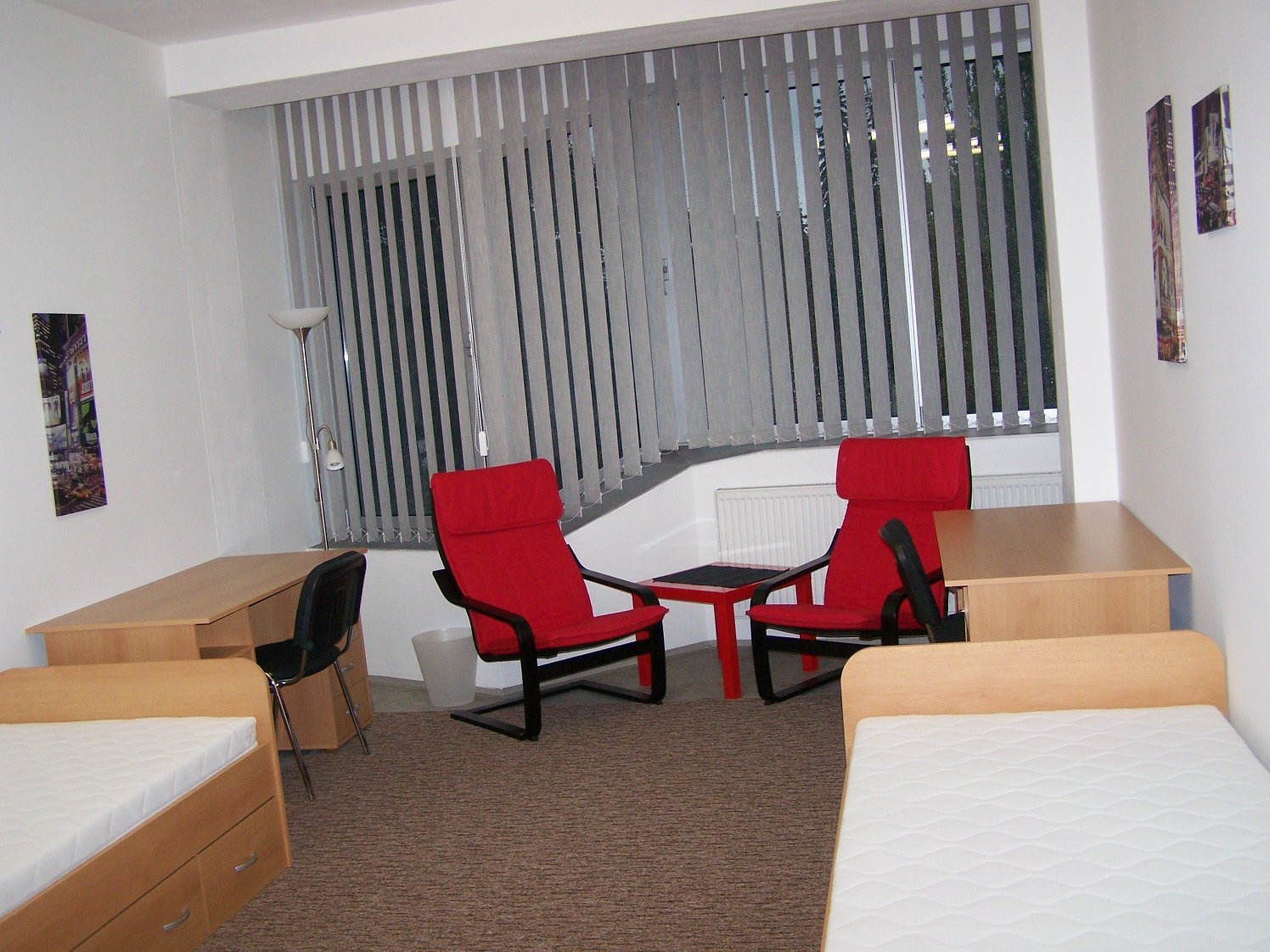 Velký prostorný byt 120 m2, nově moderně zařízený, tři prostorné pokoje (23 m2) po dvou studentech, dvě sprchy a dvě WC, prostorná vstupní hala (20 m2), kuchyň s jídelním koutem. Výborná dopravní dostupnost, dopravní uzel Stará osada 100 m, supermarkety Kaufland, Albert 100 m.