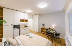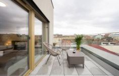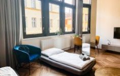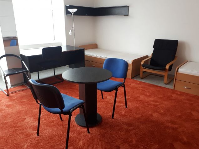 Big spacious apartment 120 m2, newly modern furnished, three spacious rooms (23 m2) for two students, two showers and two toilets, spacious entrance hall (20 m2), kitchen with dining cuisine right corner. Excellent accessibility, transport hub Stará osada 100 m, supermarkets Kaufland and Albert 100 m.