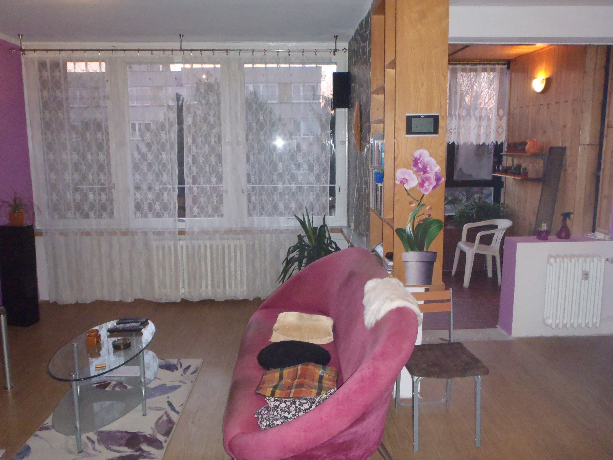 Nabízím (nejraději) studentovi/studentce SŠ/VŠ bydlení v Hradci Králové. Byt je 3+1 v cihlovém domě. Vlastní neprůchozí pokoj s přípojkou na vysokorychlostní internet Wi-Fi 2.500 mB/ps. Zbytek společný – balkon, zimní zahrada a veškeré vybavení – kuchyně, mikrovlnná trouba, veškeré domácí spotřebiče a lednice s mrazákem. Obývací pokoj s domácím kinem a 3D LED TV úhl. 109cm, HQ 5.1 audio, satelit, telefon, fax, foto tiskárna, kopírka a scanner. Velikost obyvatelné plochy celkem je 89mc. Pronajímaný pokoj je cca. 18mc. K dispozici je garážové stání přímo pod domem. Zděný sklep s možností uložení kola, motorky apod. V koupelně automatická pračka a vana, sprcha + veškeré příslušenství. Byt je po rekonstrukci. Bydlím v bytě sám. Zvíře nemám.