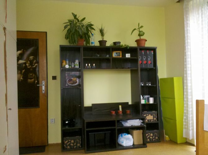 s balkónem v tichém a zeleném prostředí rodinného domu nedaleko Kyjského rybníka. Pokoj je vybaven jen šatní skříní a je půl roku vymalovaný. Výborná dostupnost do centra: 9 min na Náměstí Republiky, 11 min na Hlavní Nádraží. Dále pak možnosti busem: 10 min metro B Rajská Zahrada, 10 min metro A Depo Hostivař, 10 min tram Spojovací. K vybavení bytu patří pračka, myčka, lednice, mikrovlnka, keramická deska i trouba, internet, u baráku je pak večerka a do 200m i ovoce-zelenina. V létě je k dispozici zahrada a možnost grilování, nebo procházky či běhání u rybníka. Cena 4000 + 1600 poplatky, vratná kauce 4000Kč