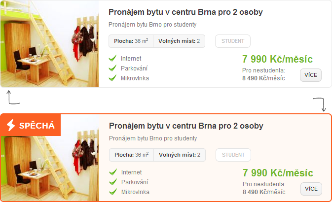 Spěcháte na pronajmutí své nabídky nebo chcete nabídku ve vyhledávání akorát více zvýraznit? Od toho tu je funkce zvýraznění. Po dobu, po kterou si nabídku zvýrazníte, ji budeme zobrazovat obarvenou s odznakem URGENT a potencionální zájemce tak víceméně nebude mít možnost si Vaší nabídky nevšimnout.