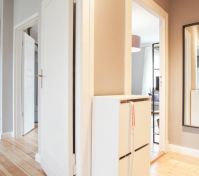 Apartmán s parketovou podlahou v obývacím pokoji, dlážděnou podlahou v koupelně, dlážděnou podlahou v kuchyni. Má dobře vybavenou kuchyň s oknem, dobře vybavenou, elektrickou troubou, sklokeramickou deskou, mikrovlnnou troubou, myčkou, lednicí a mrazákem. Pro více informací… více informací o pronájmu bytu