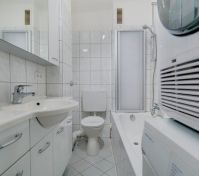 Kombinace pračka se sušičkou v bytě, TV s plochou obrazovkou, kabelová TV, stereo, vč. Ložní prádlo a ručníky včetně žehlicího prkna, žehličky a vysavače. Kuchyně: Dobře vybavená kuchyň s oknem, elektrická trouba, sklokeramická deska, 4 plotýnky, digestoř, myčka, lednice s… více informací o pronájmu bytu